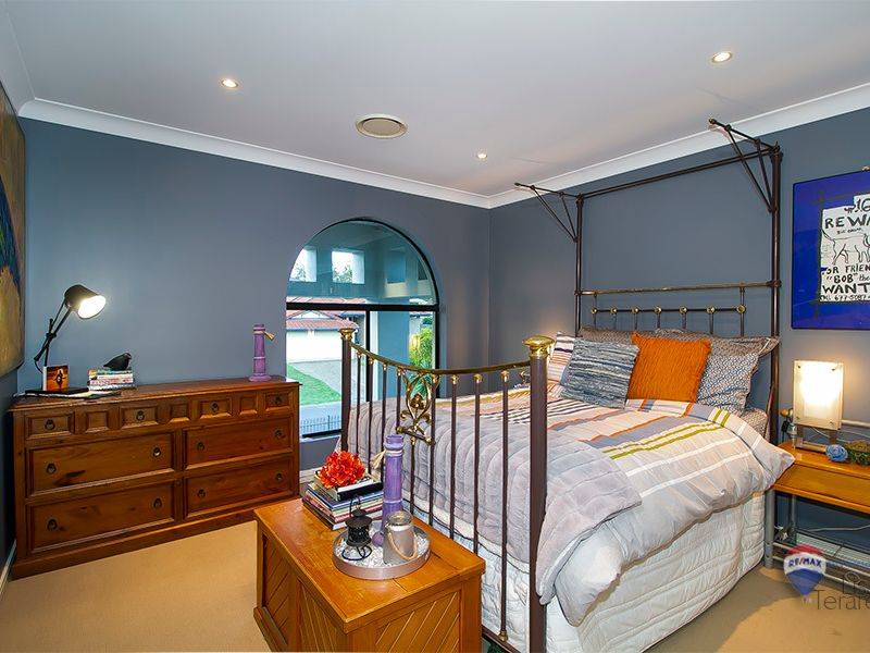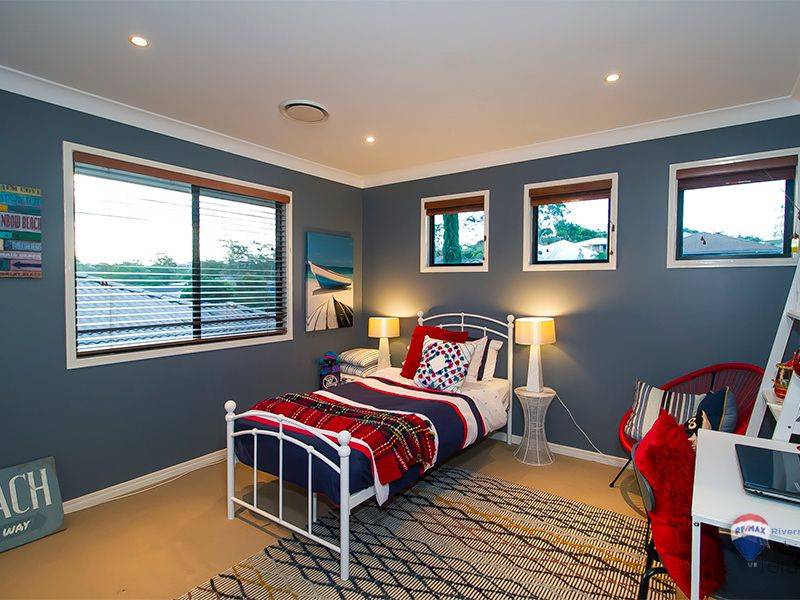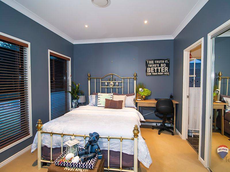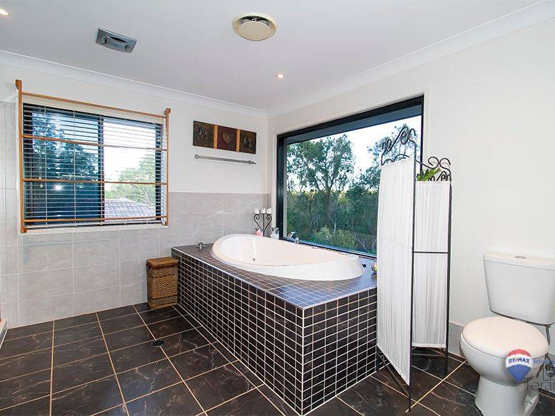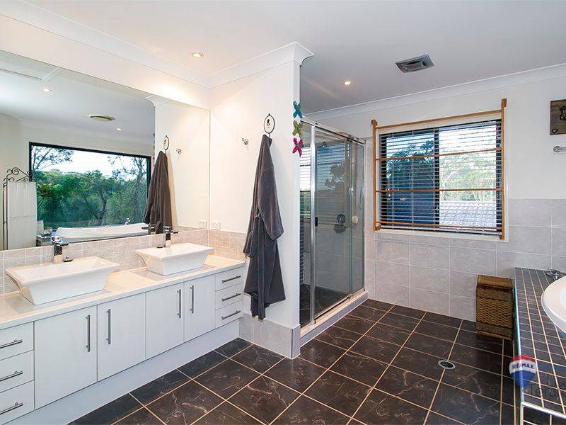 Master with large walk through robe and luxurious ensuite with full spa bath, dual vanity basins and relaxing bushland views.