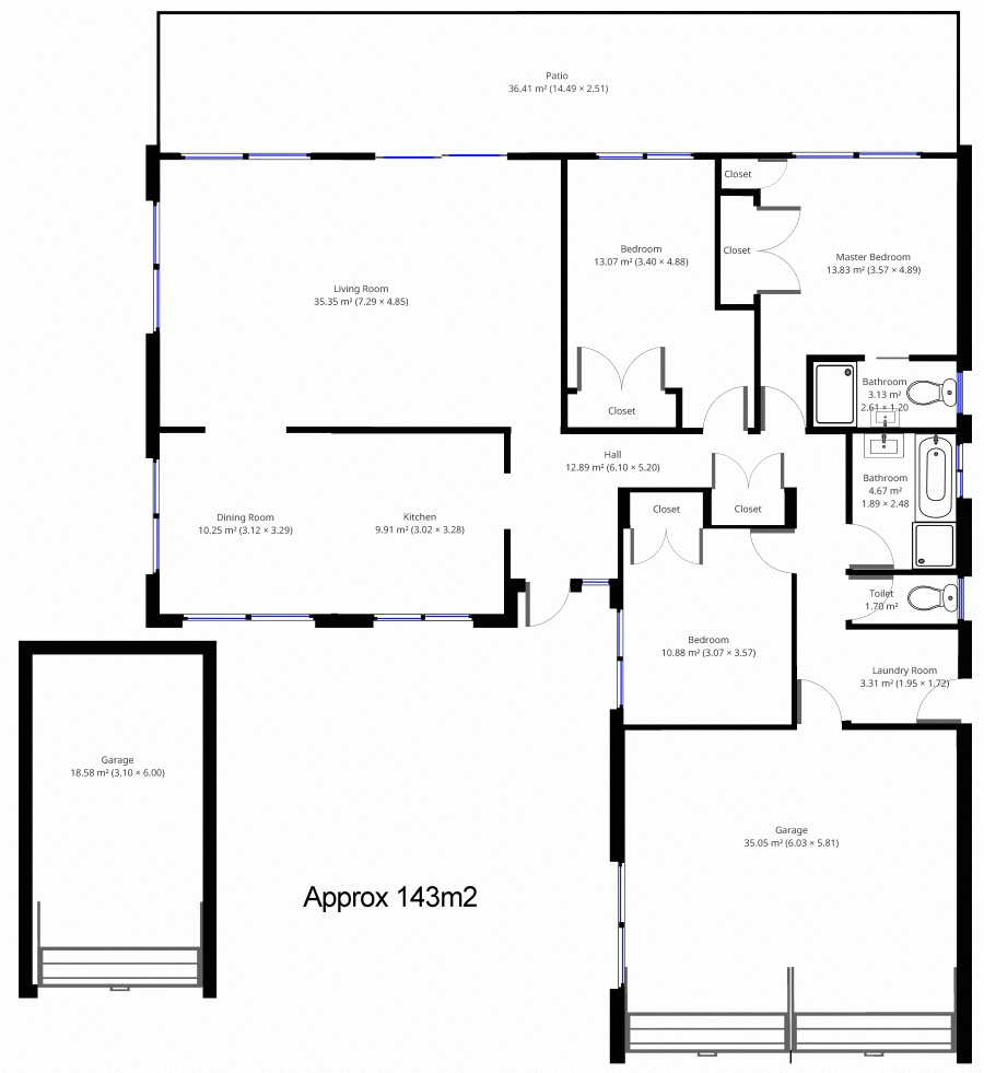 Three very good sized bedrooms all have built-ins and ceiling fans and the master has ensuite. The family bathroom has a bathtub and separate toilet.