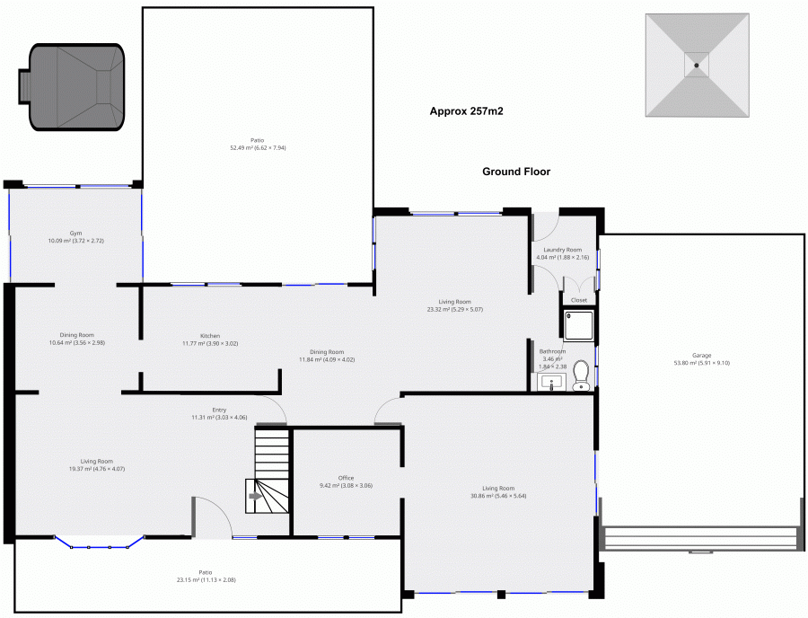 Outdoor entertainment area Fenced Outside Spa Gym Study