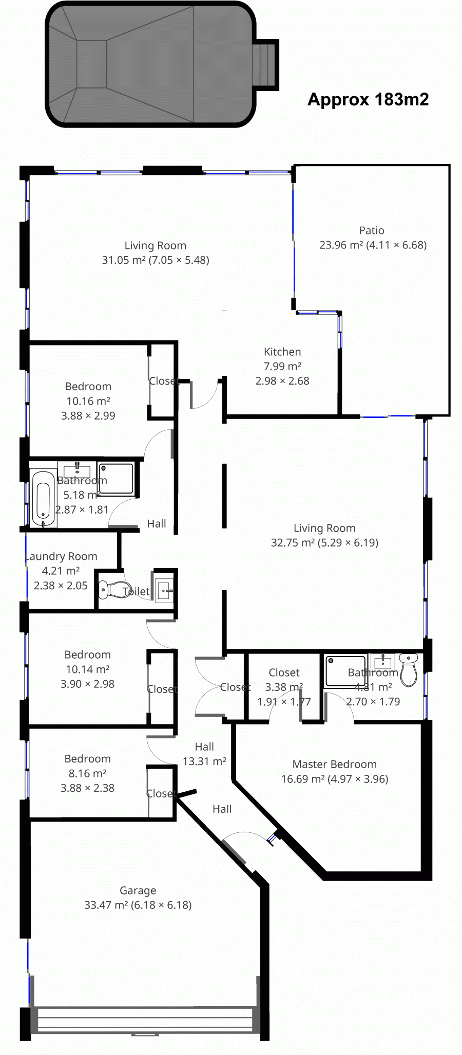 • Three more good sized bedrooms all with ceiling fans (two with built-in wardrobes)