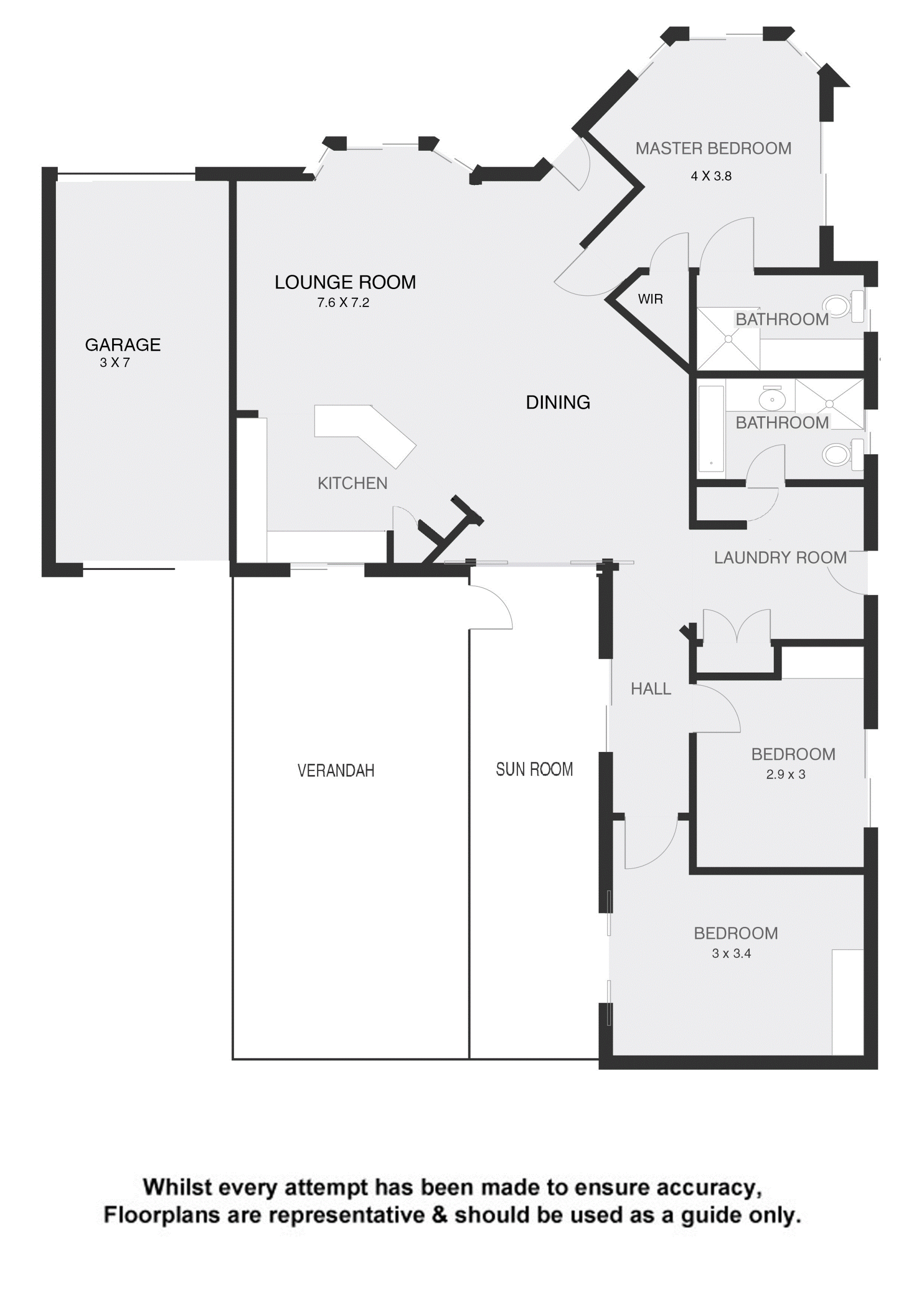 The home is an open plan design with much potential to add on. Three bedrooms, all with built in wardrobes, family room with an adjacent dining room so you can all enjoy the most of your family time together and two main bathrooms including an ensuite off the main bedroom.