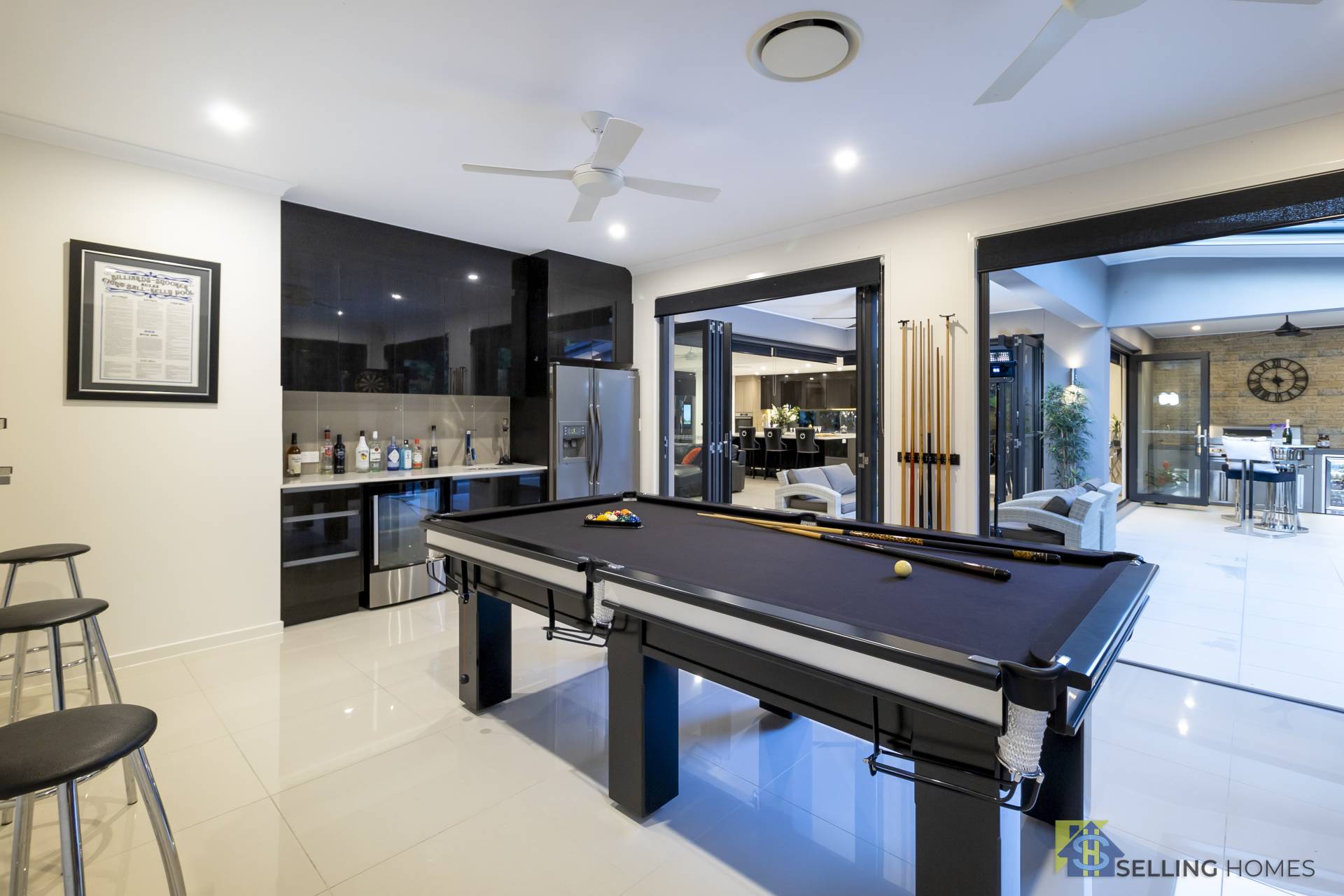 The ultra-modern games room includes a fully equipped bar and flows seamlessly to the jaw-dropping alfresco area via huge bifold doors. For your convenience there is space for extra toys, vehicles or a home business and is presently set up as a full-size gym.