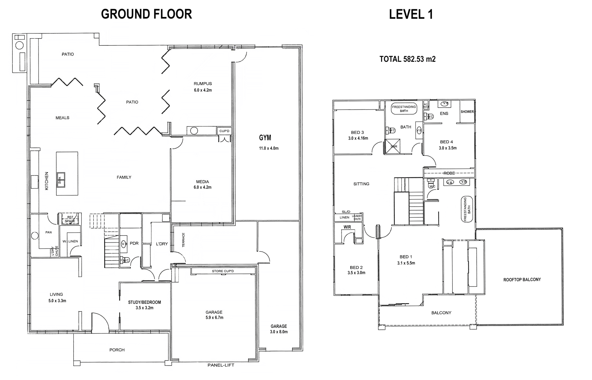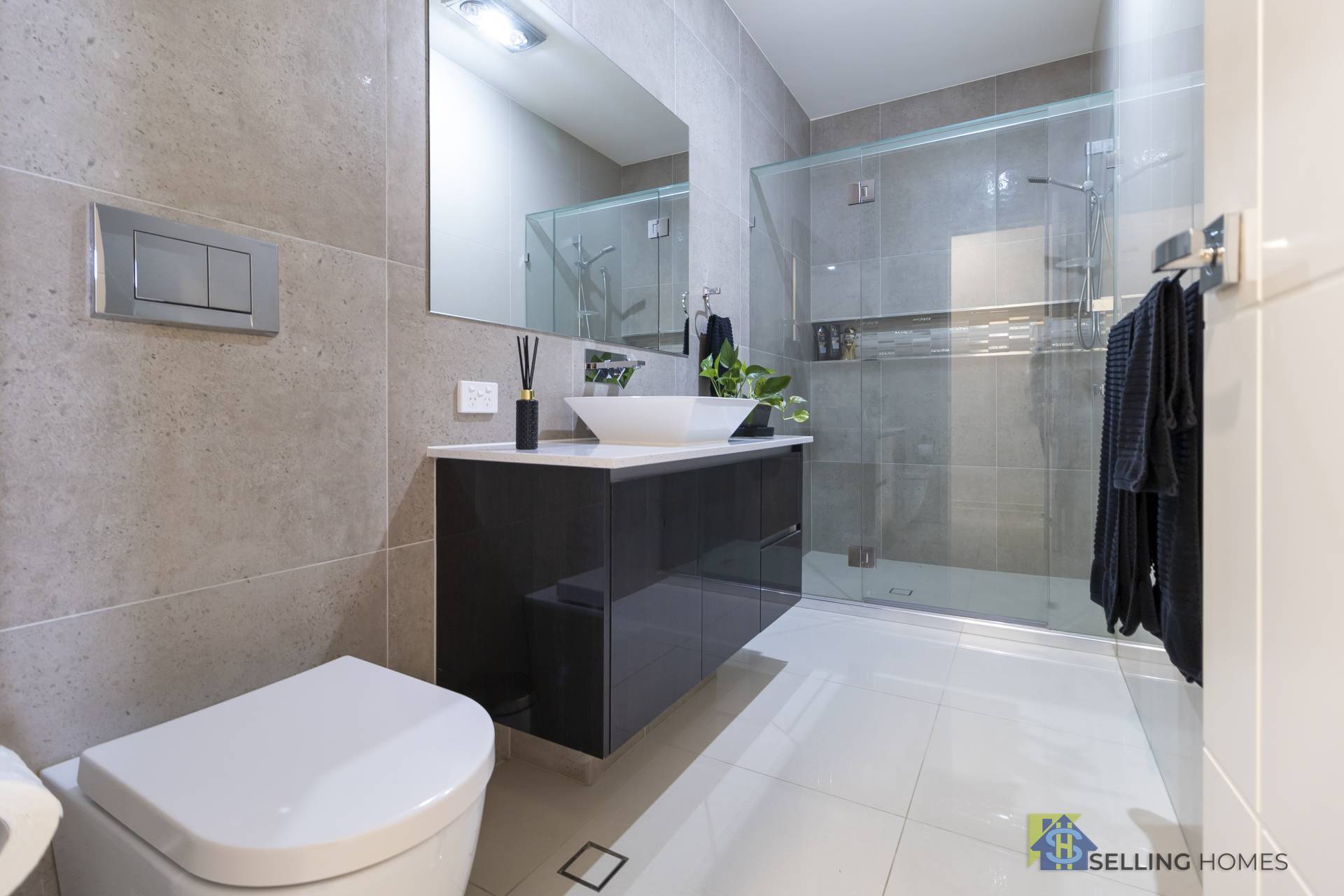 The upper level has a penthouse feel with accentuated 2.8 metre 'plus' ceilings, three elegant bedrooms, two with ensuites the other bedroom share a luxurious main bathroom with freestanding bath. The master is a showcase of style, with an abundance of space and provides a large walk -in custom made ‘His’ wardrobe on one side of the room and one bedroom dedicated to a boutique-style walk-in dressing room for ‘Her’ (which can easily convert back to another bedroom) on the other side of the room. Add to this a magazine-worthy ensuite which includes a freestanding soaking bathtub, dual vanities and separate toilet. Step out onto the spacious private rooftop balcony with opening Vergola roof and enjoy distant mountain views and spectacular sunsets.