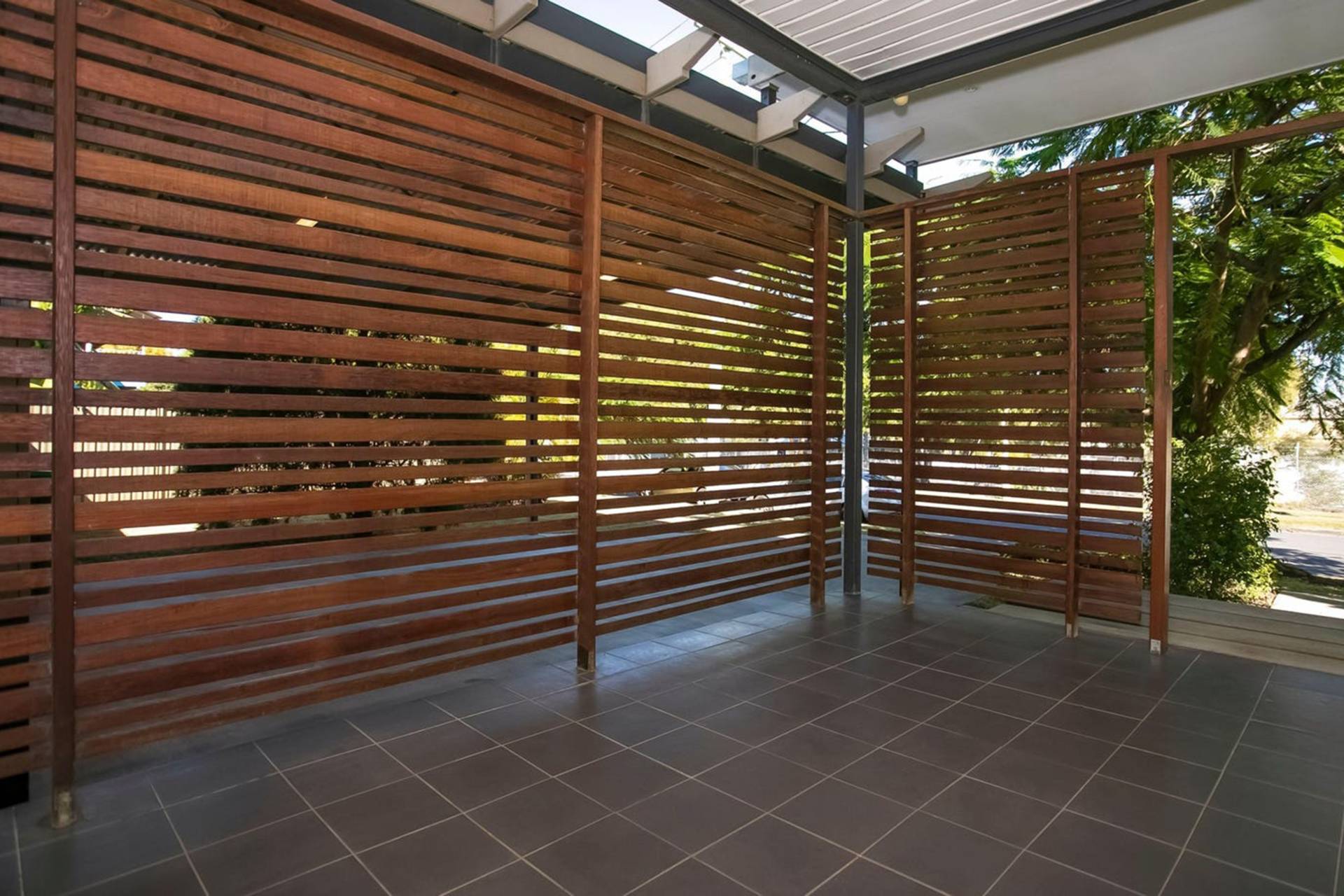 Window privacy with shade timber screening and beautiful timber bi-folds opening out to a secure front patio.