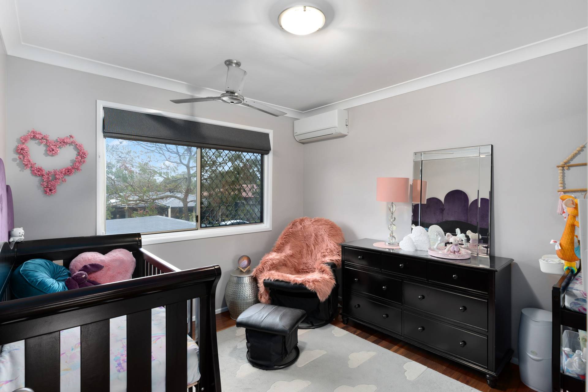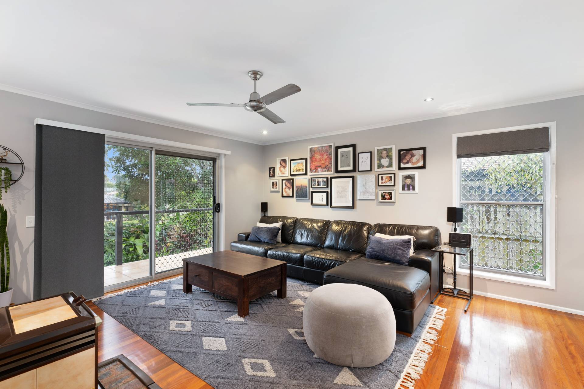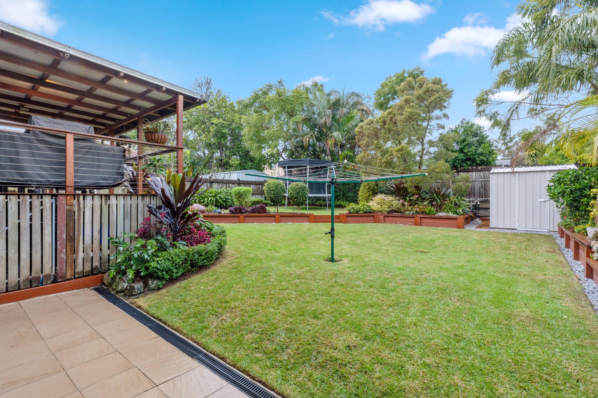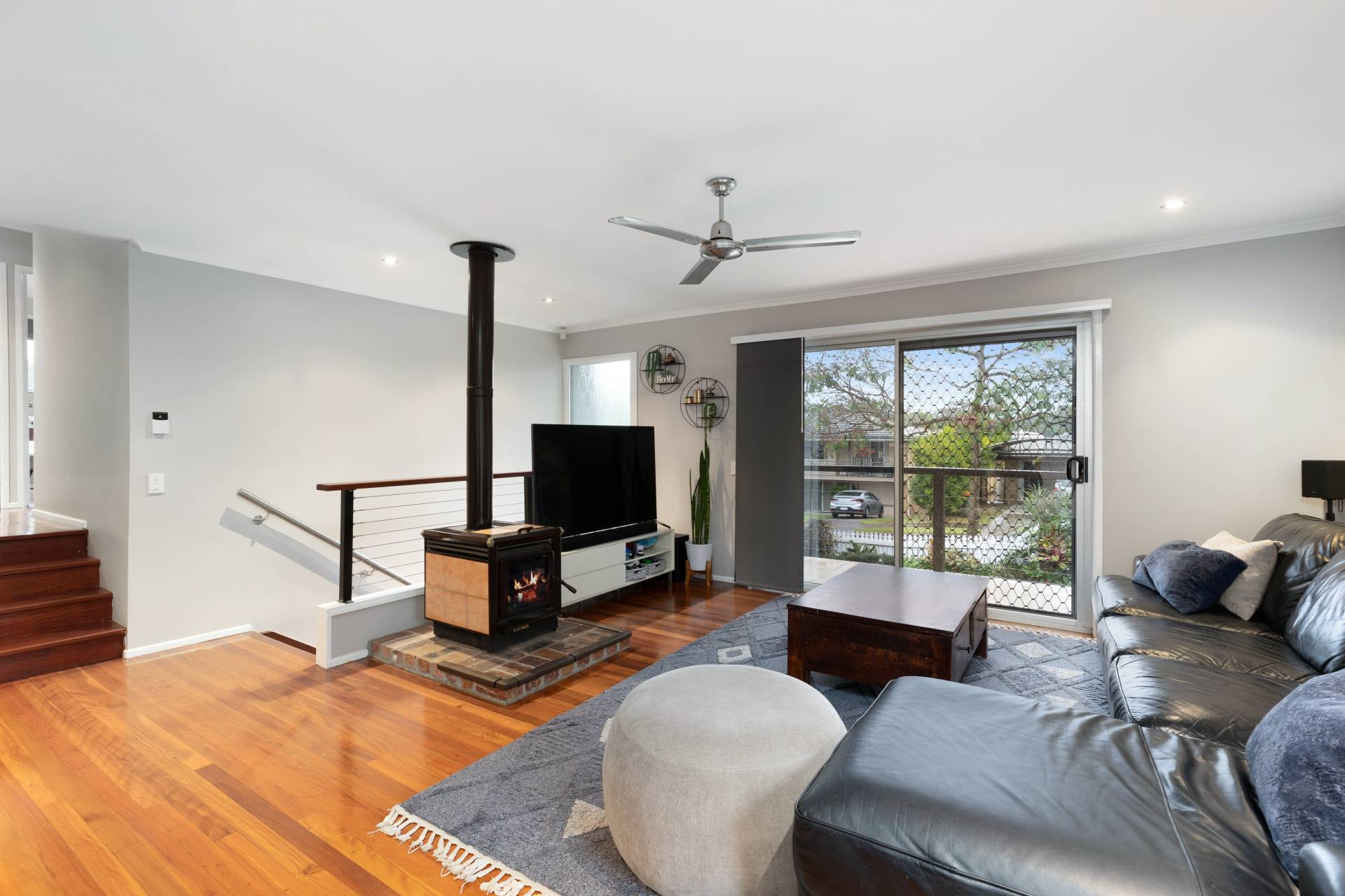 It will only take you minutes to fall in love with this well-appointed three-bedroom plus study home in Jamboree Heights. From the moment you walk in the door, you will enjoy the intrigue of this split-level home. Beautiful polished floors throughout with 5 split reverse cycle air conditioners. The lounge boasts a free-standing fireplace, with the kitchen and dining adjacent. These are views from the kitchen over the large rear deck and beautifully maintained yard. There is plenty of room for the kids to play in the fully fenced yard. Also, there is a double lock-up garage and a double carport so plenty of room for the cars.