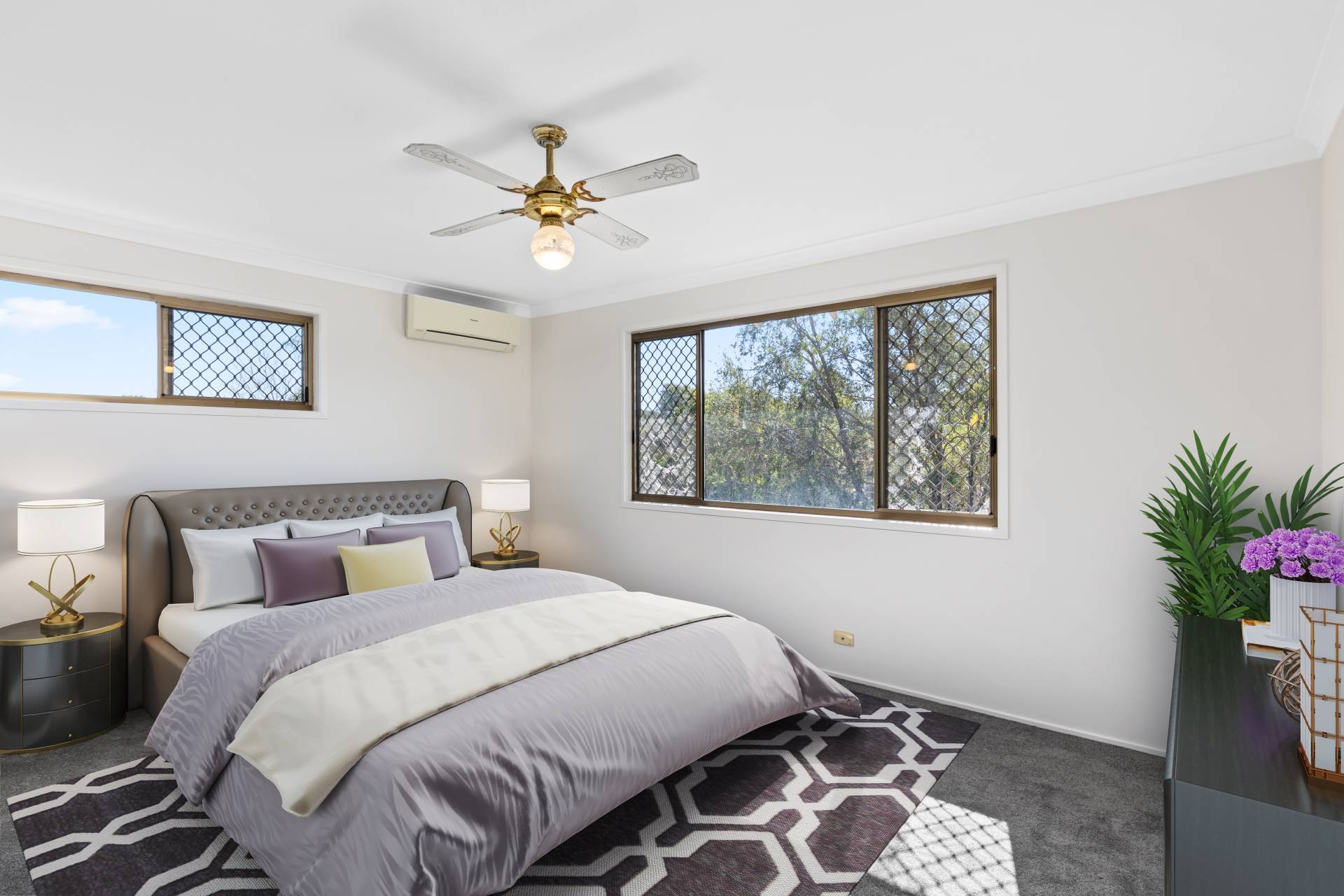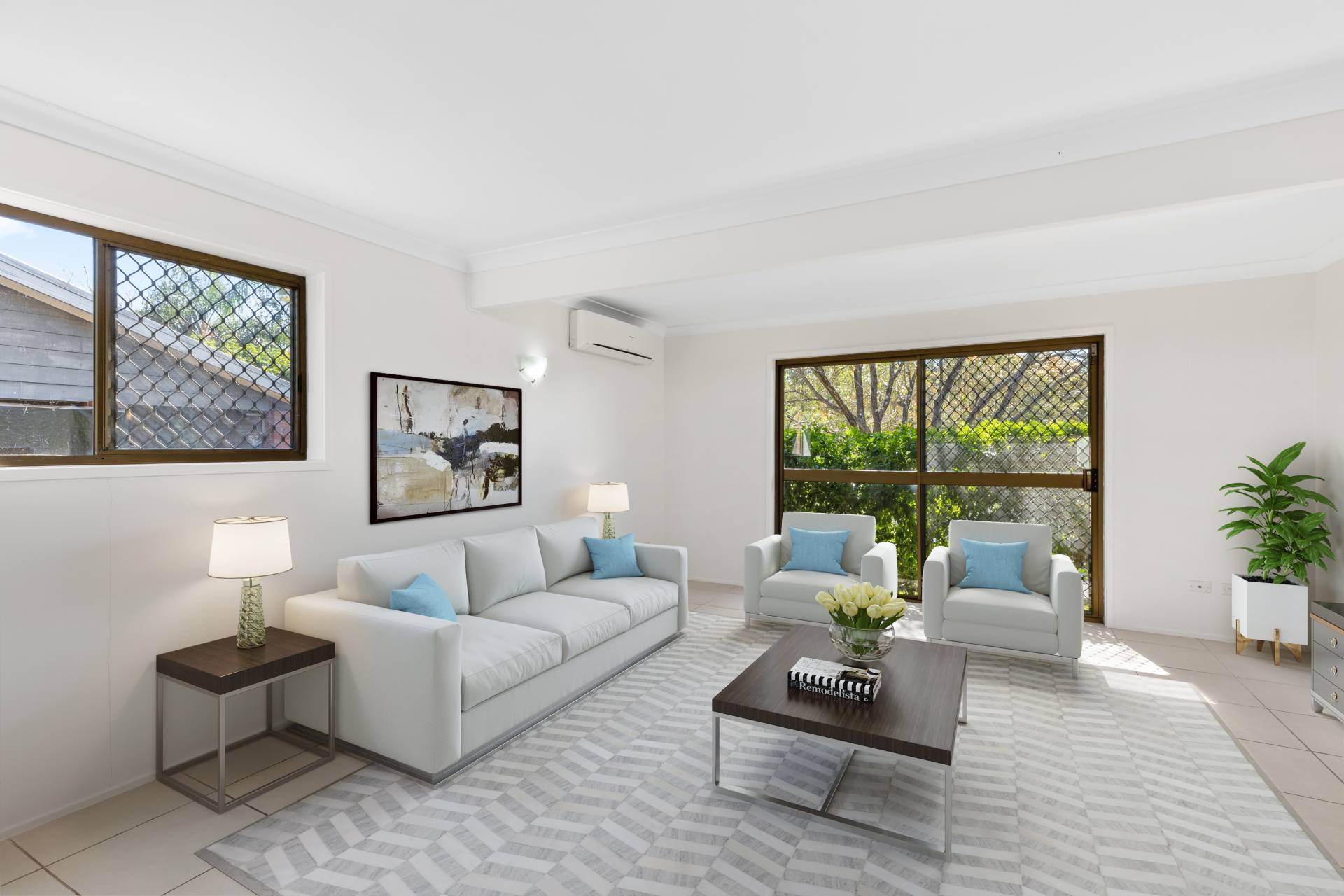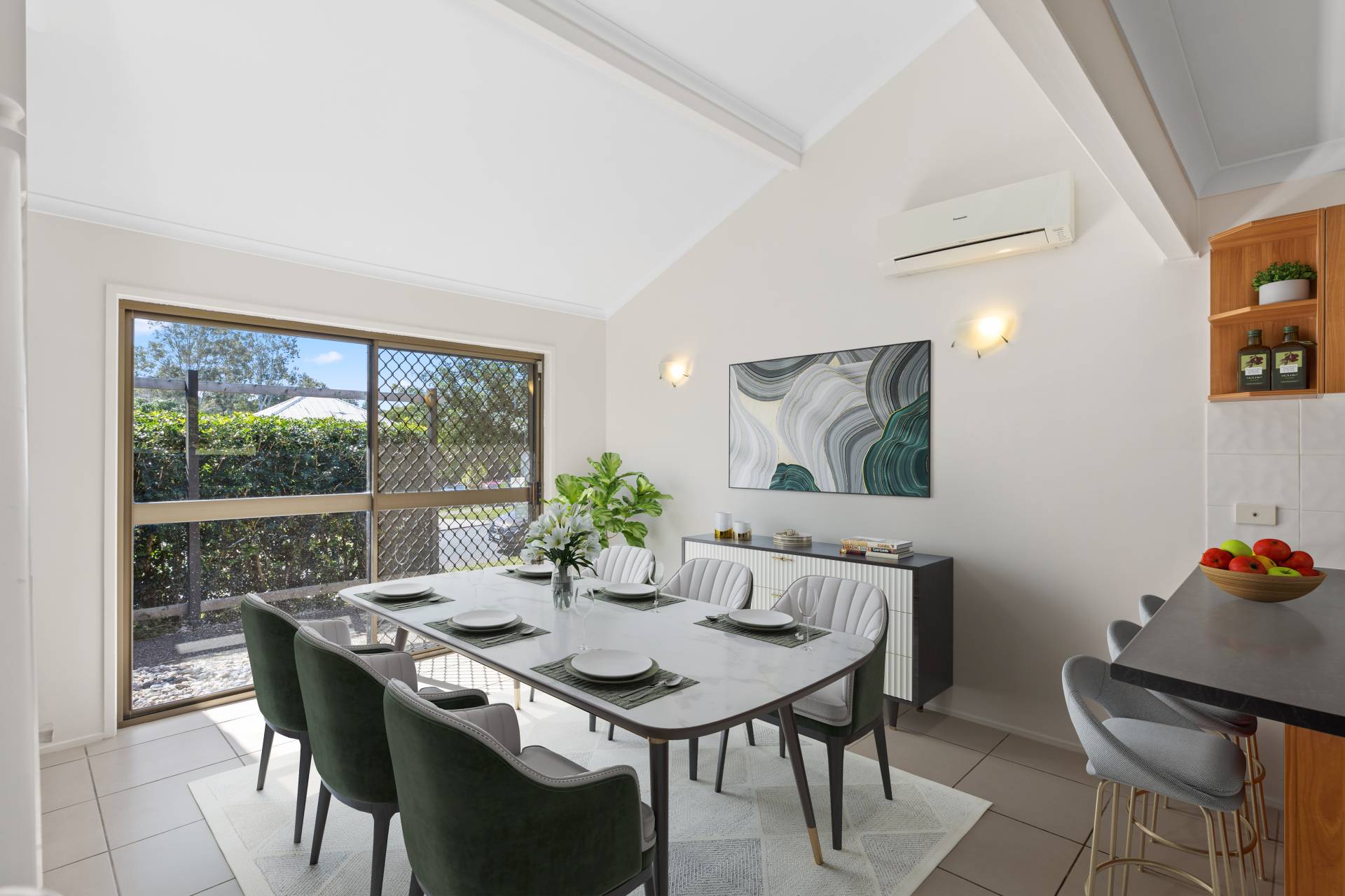 The downstairs area is fully tiled, with raked ceiling in the dining area. Split air conditioner in the separate lounge and dining room.