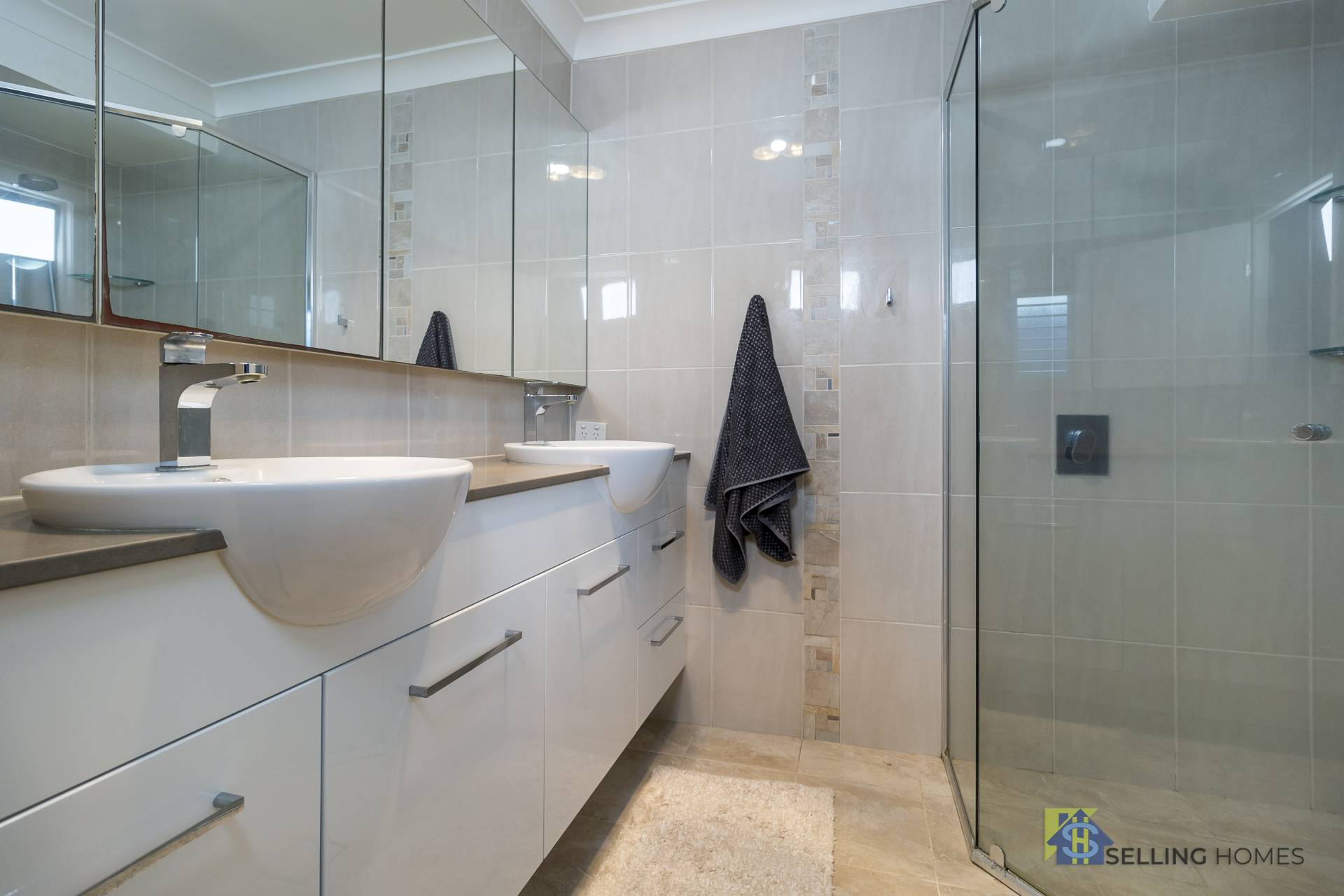There are four built in bedrooms, all with ceiling fans. The master bedroom has a generous ensuite with his and hers vanity basins, and walk in robe.