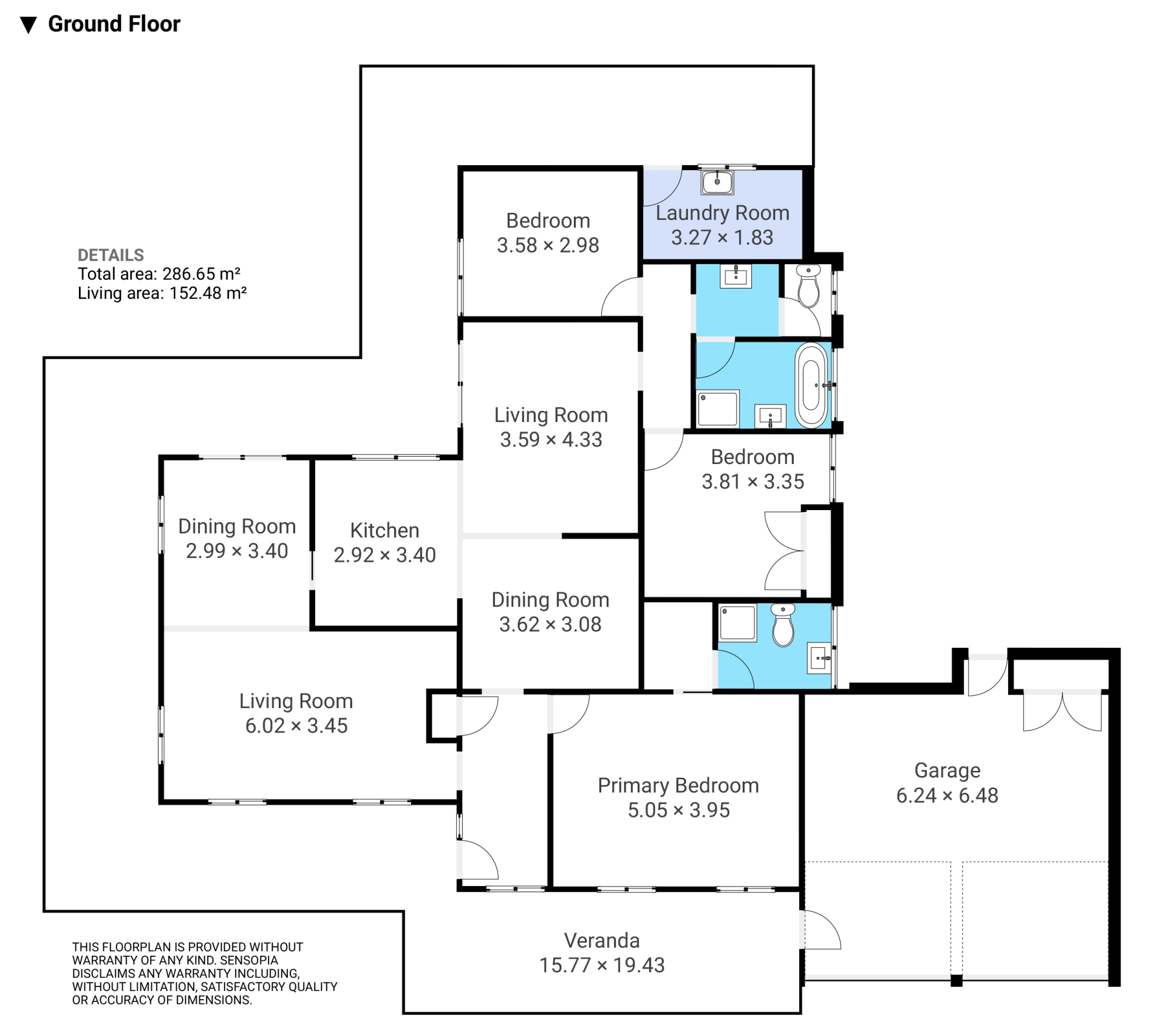 - Large main bathroom with powder room