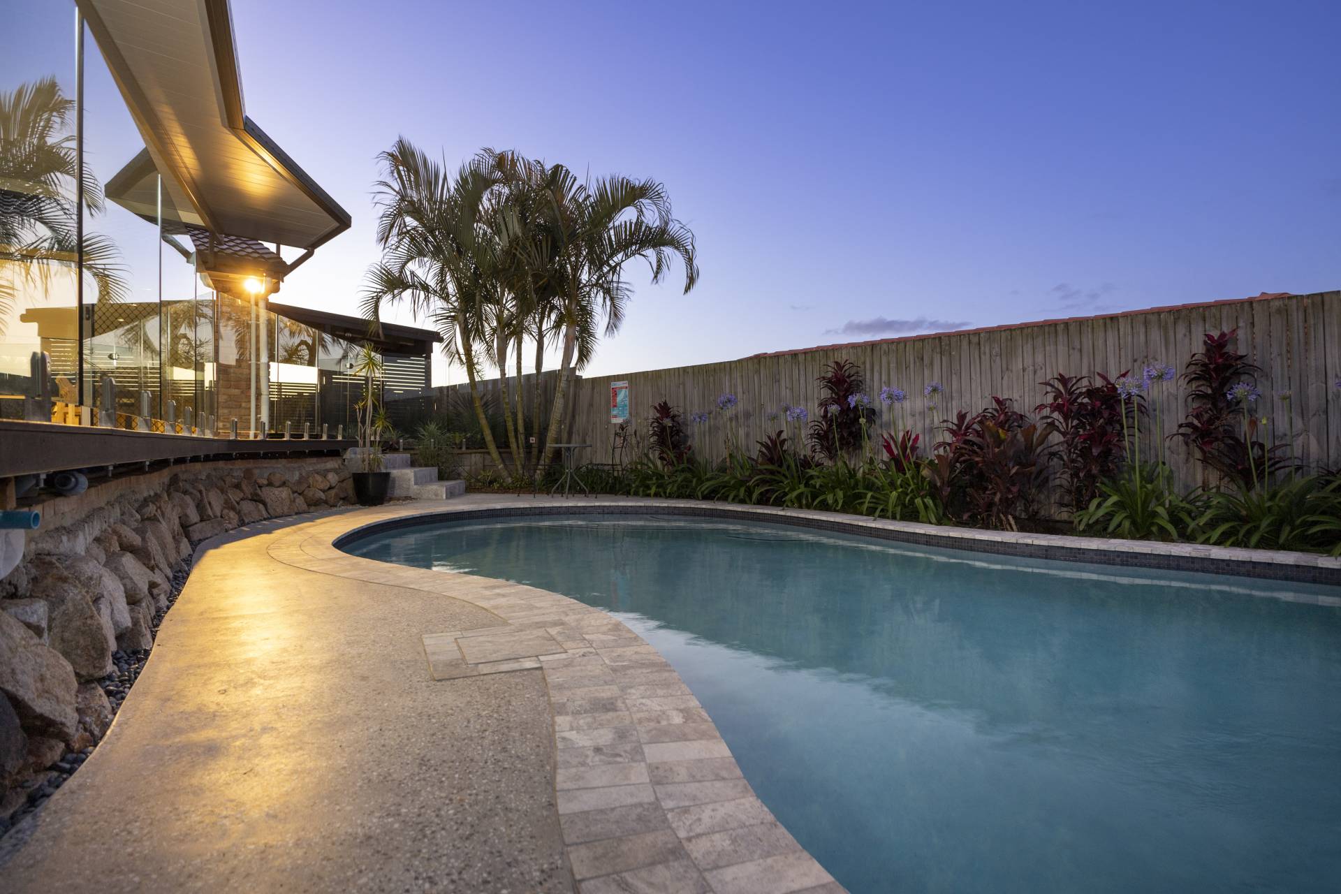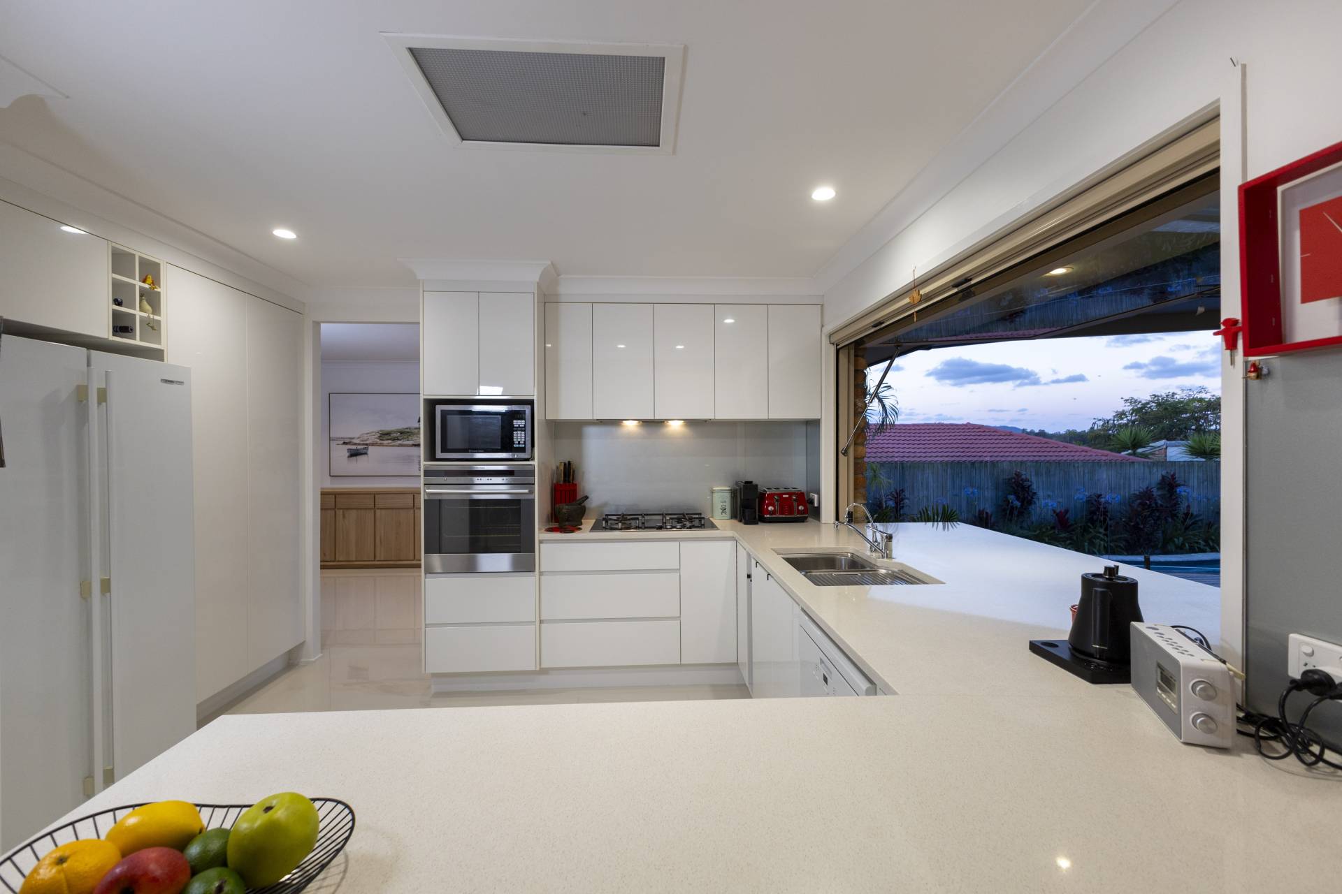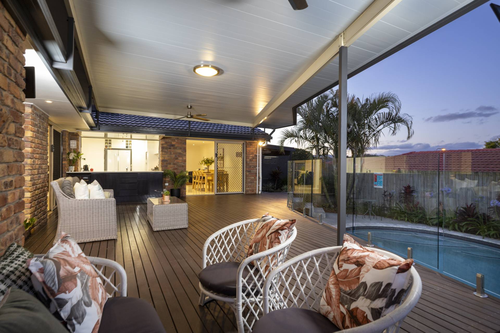- Open plan kitchen with dishwasher overlooking pool and deck