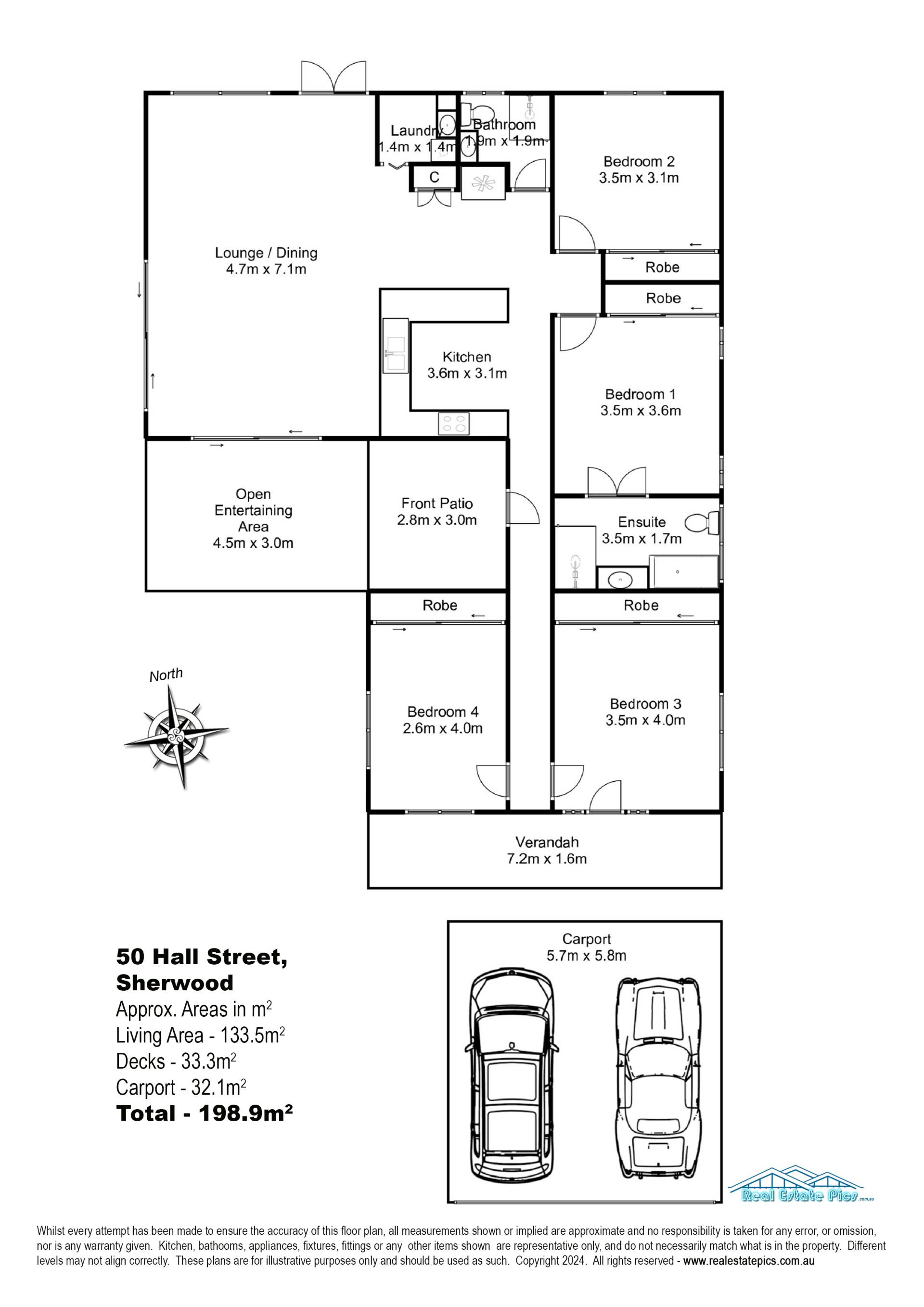 Completing the home are four good sized bedrooms, one with ensuite and 3 with built in robes. Other notable details include another full bathroom, covered front verandah and a dual carport.