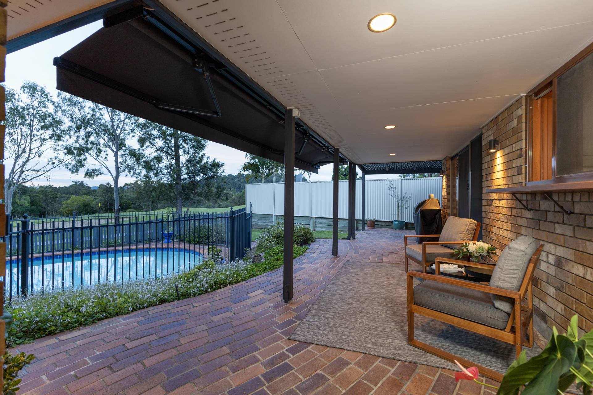 Courtyard Outdoor entertainment area Fenced Ducted vacuum system in-Ground Pool