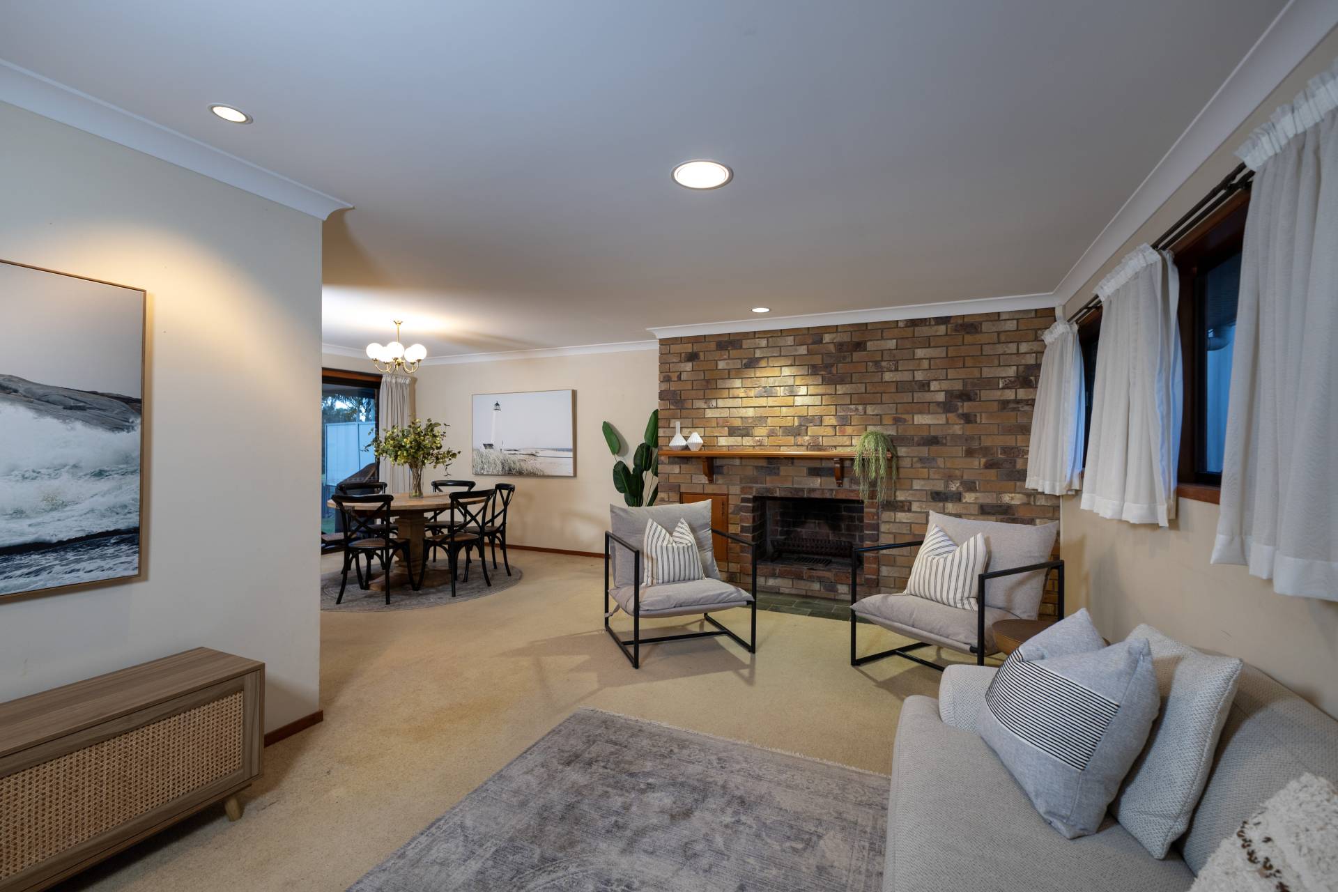 - Cosy formal dining and lounge with fireplace