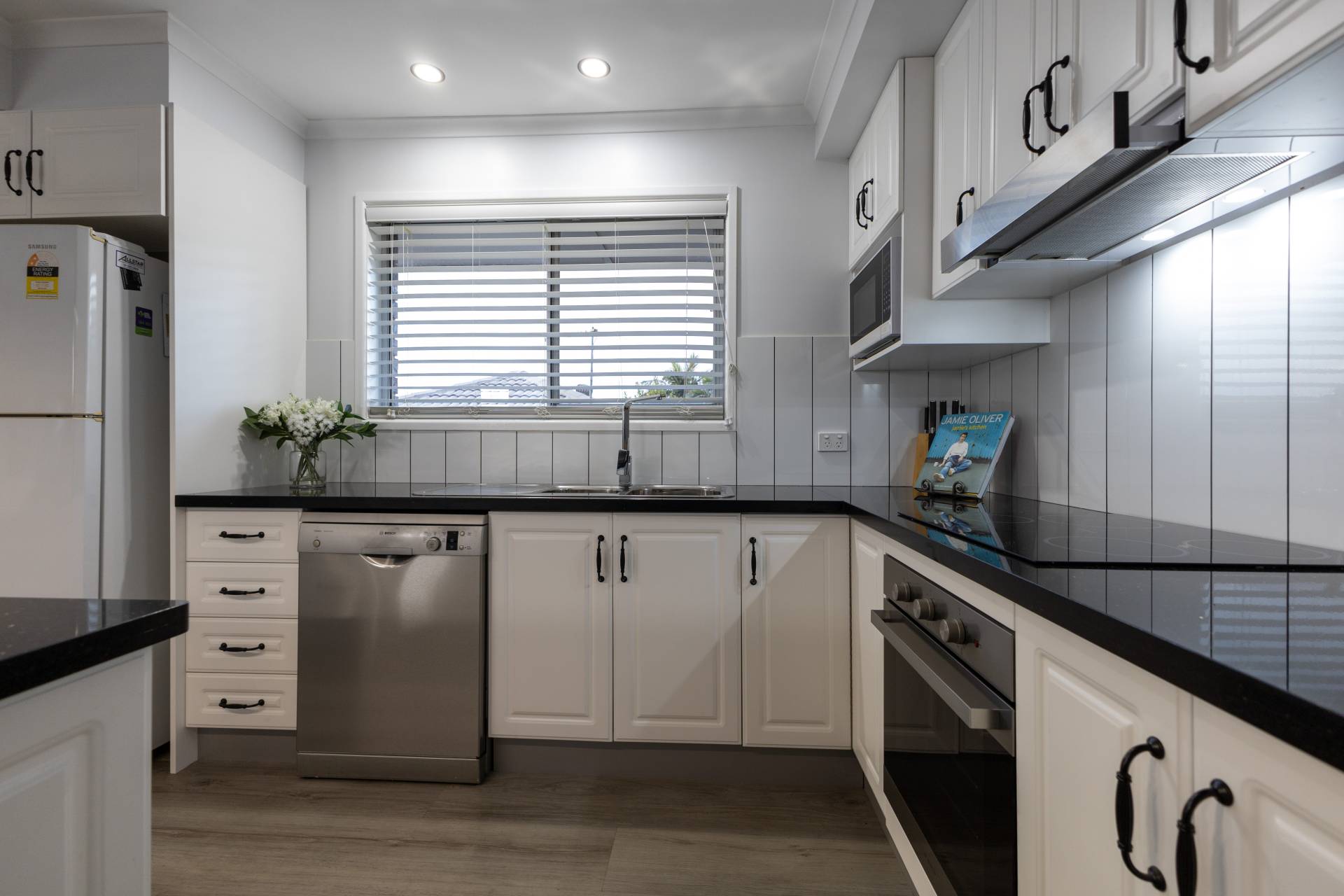 - Open plan living, dining and kitchen