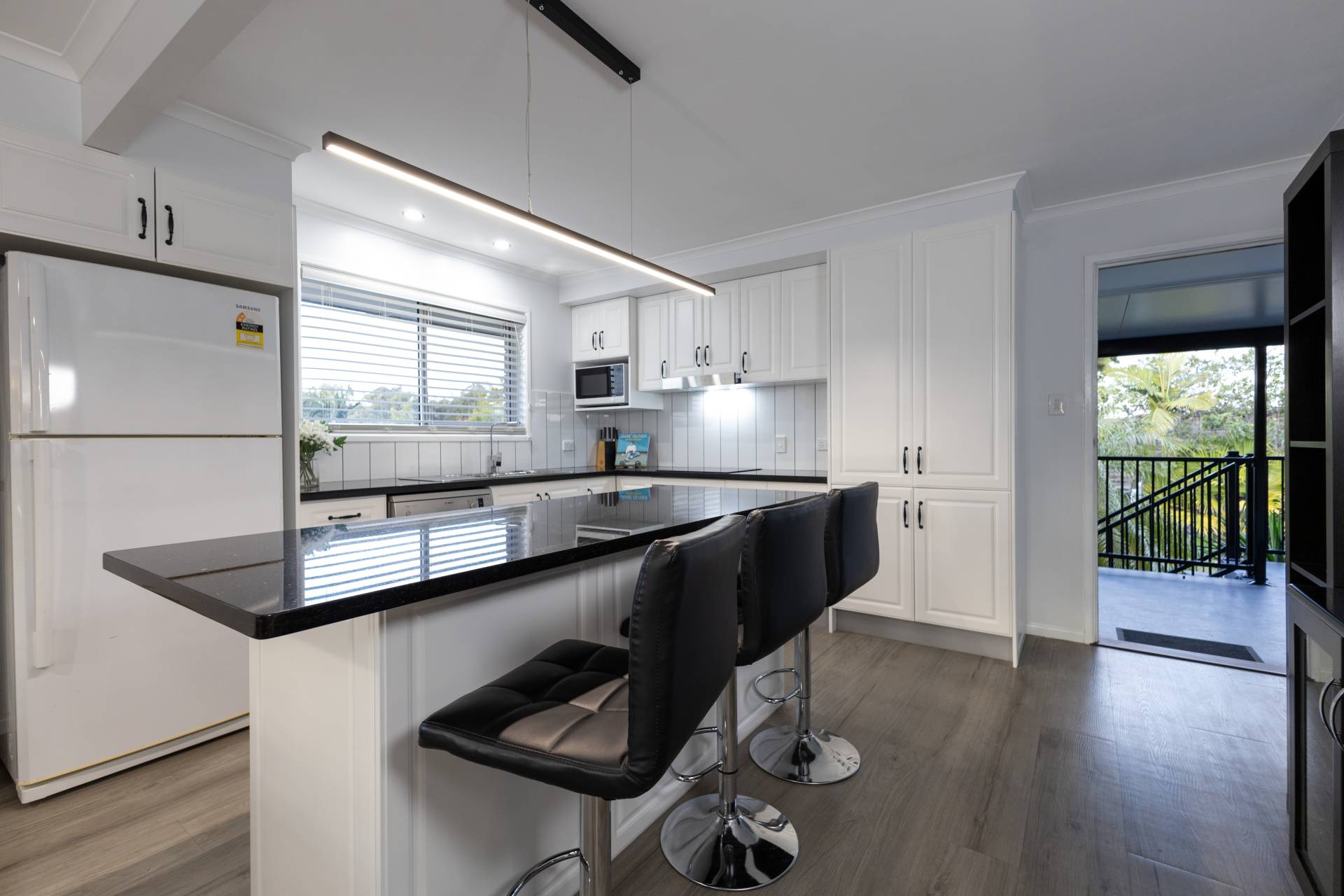 - Generous kitchen, with stone benchtops, dishwasher and breakfast bar