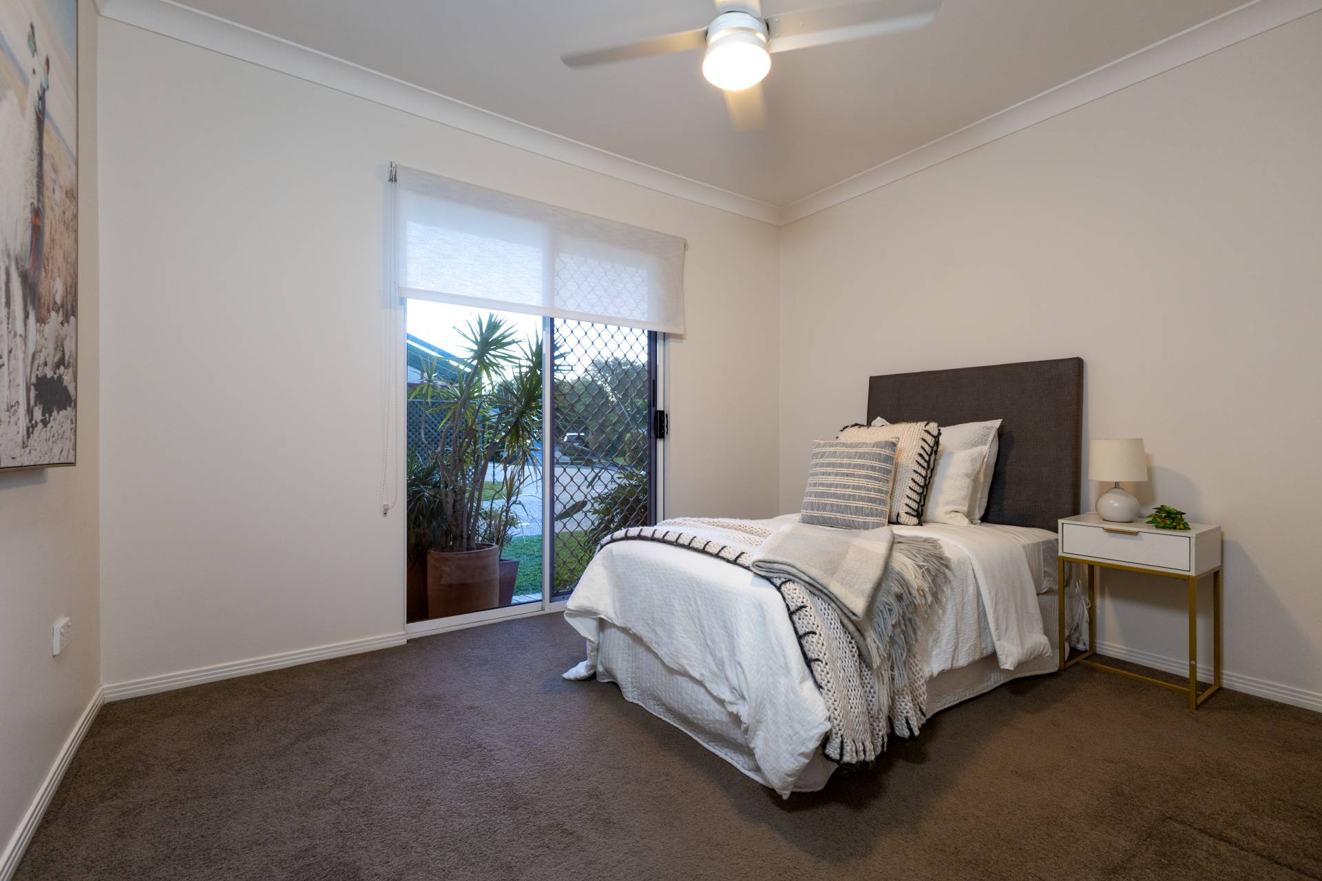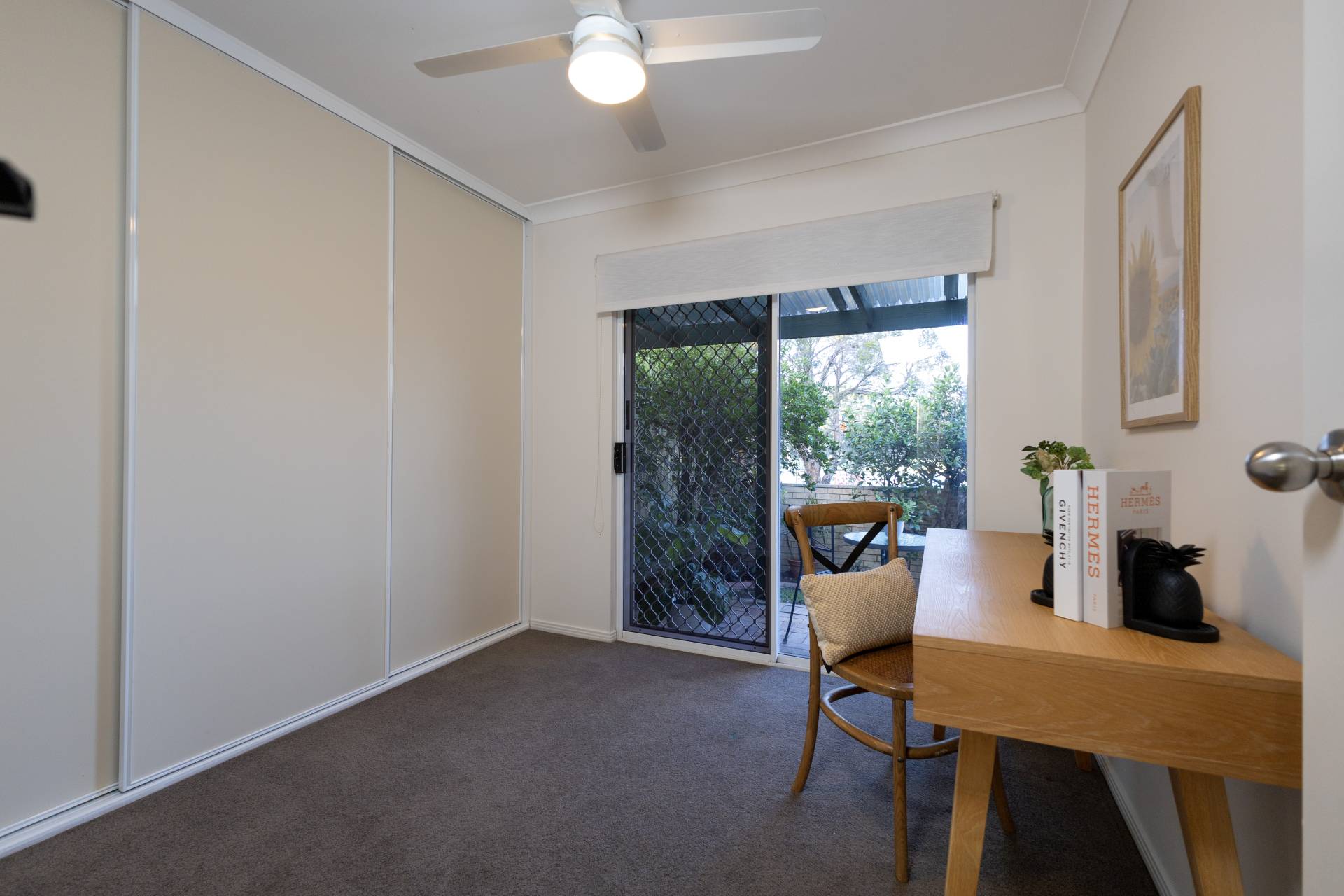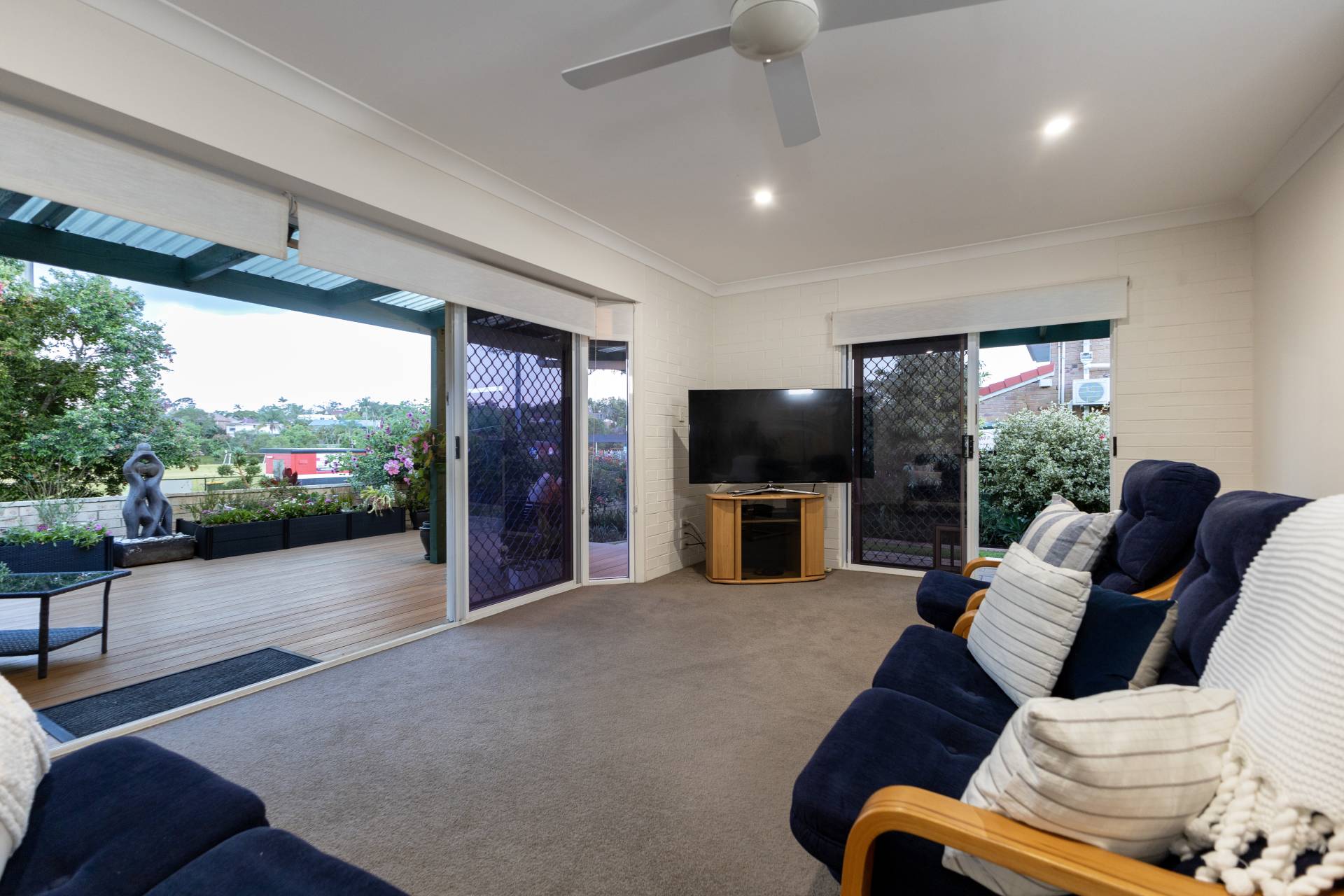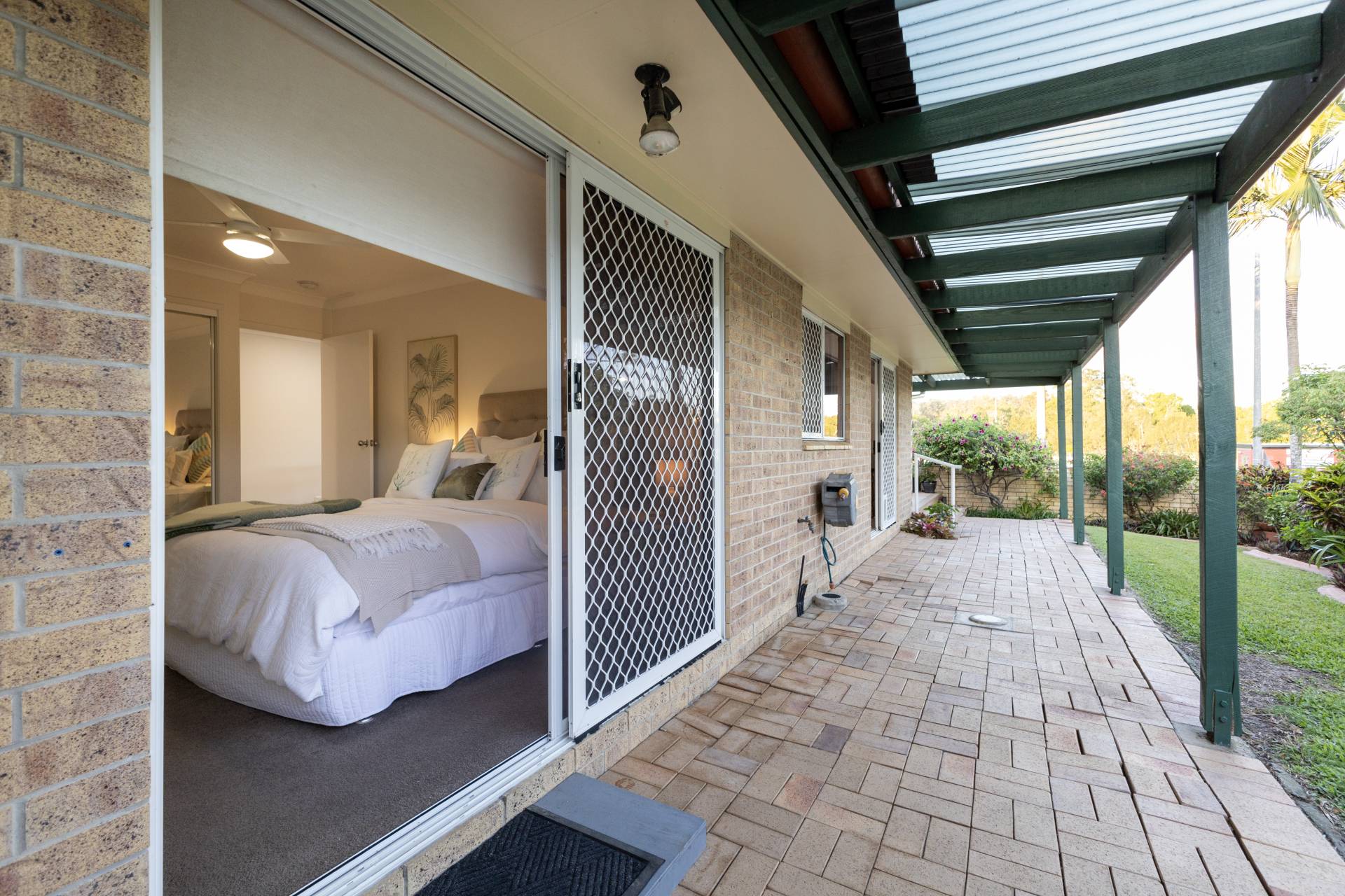 - 3 bedrooms, all with ceiling fans, built in robes and sliding doors leading to outside