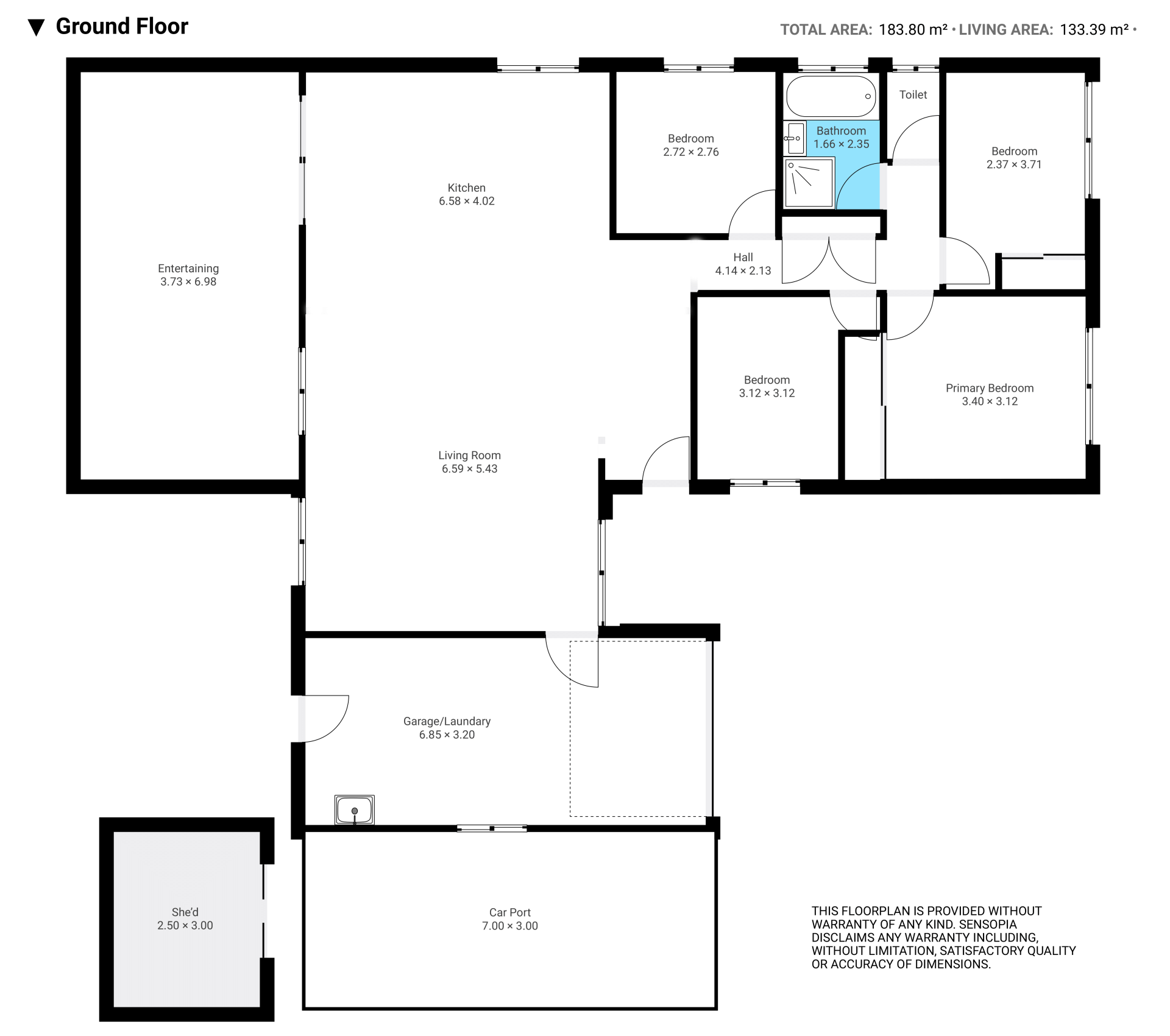 - Outdoors: Two rainwater tanks and pump, a powered garden shed with shelving and lighting for added convenience.