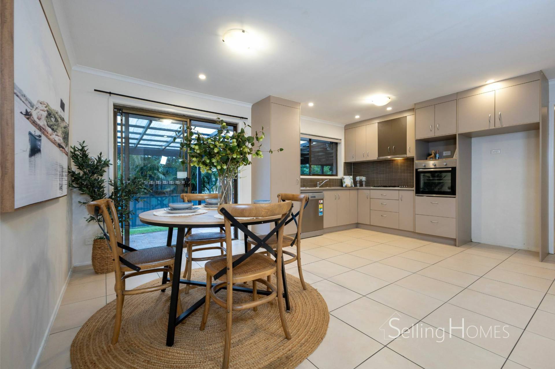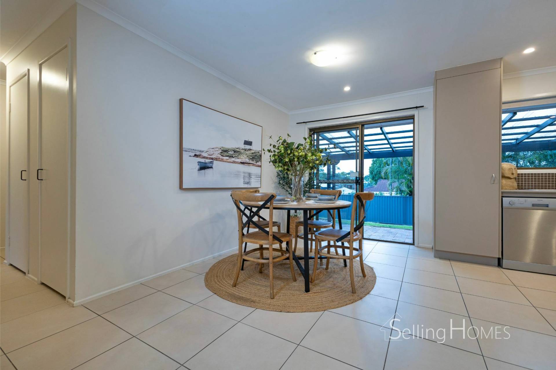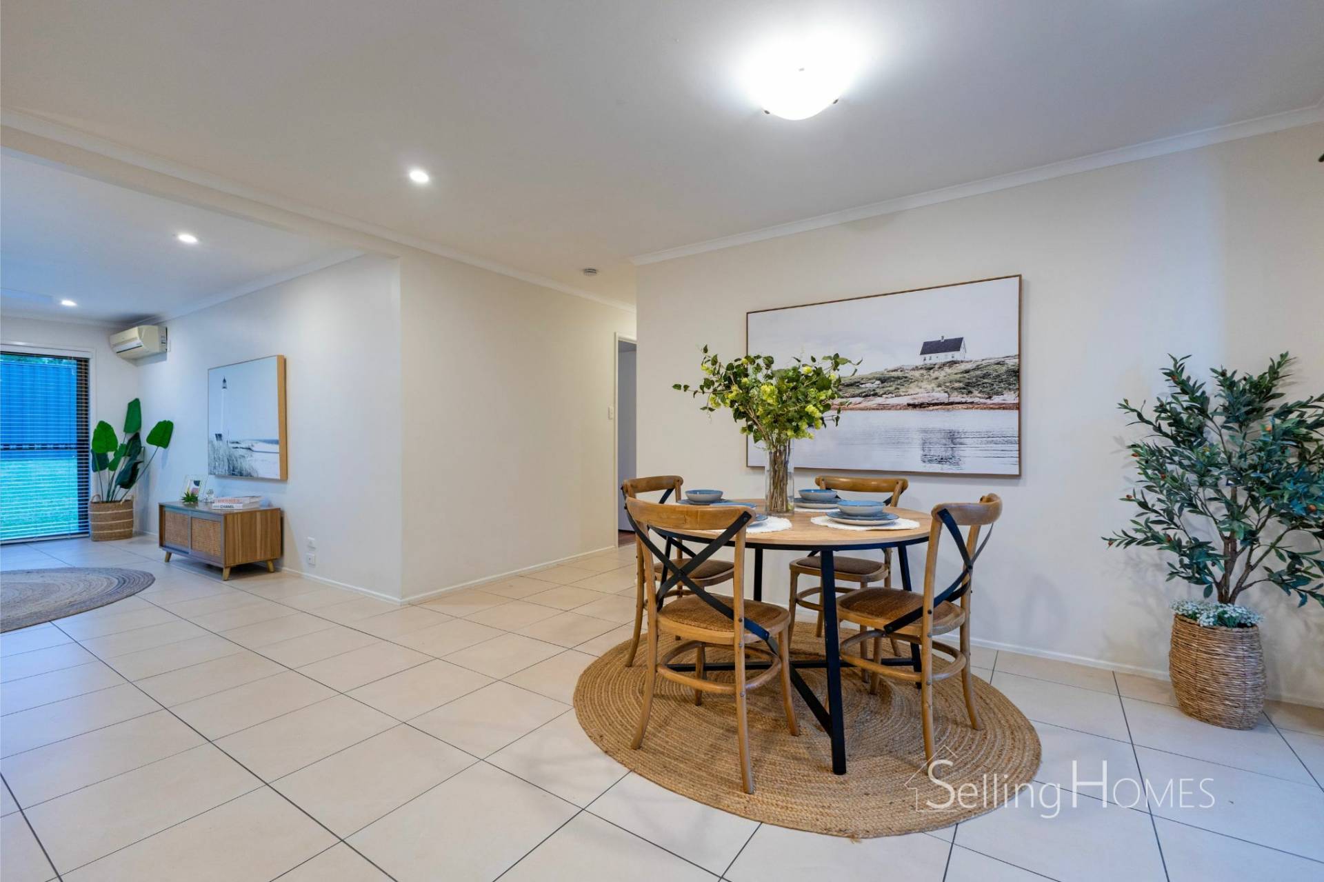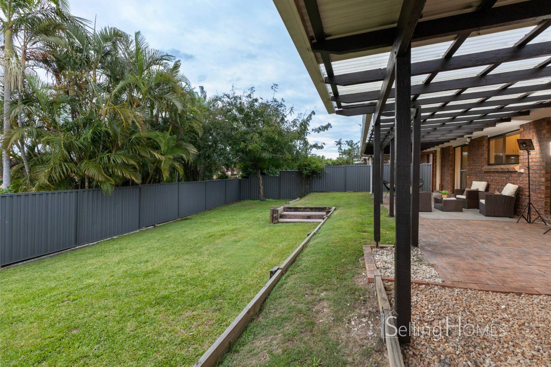 The home features a spacious, open-plan living area that combines the living, dining, and kitchen spaces, all cooled by air conditioning for year-round comfort. This thoughtfully designed layout creates a seamless flow between the indoor and outdoor areas, with the living space effortlessly extending out to a charming rear pergola and lush, grassy area. This outdoor space provides an ideal setting for entertaining guests, hosting family gatherings, or simply unwinding and enjoying quality time with loved ones. The combination of practicality and comfort makes this home perfect for both social events and quiet moments of relaxation.