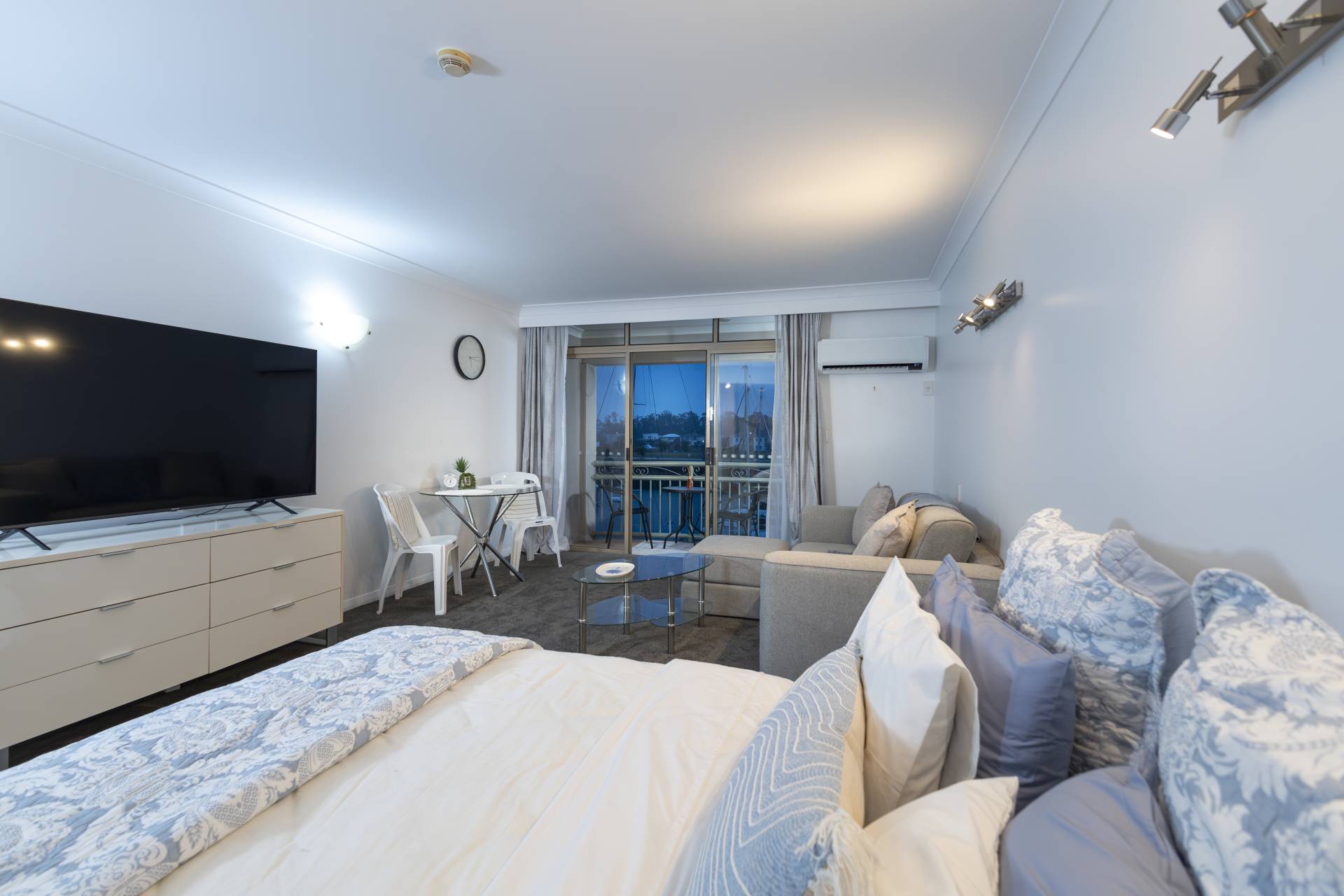 This fully furnished, studio apartment with new carpet is located on the third floor in the Hope Habour Hotel at Hope Island offering stunning views of the Marina.