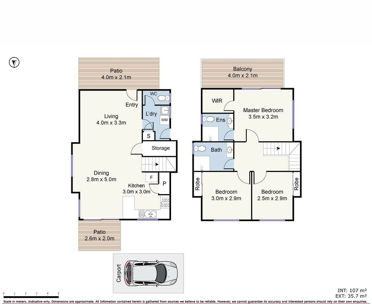 Upper level contains the 3 bedrooms, all with built in robes, 2 with air conditioning.
