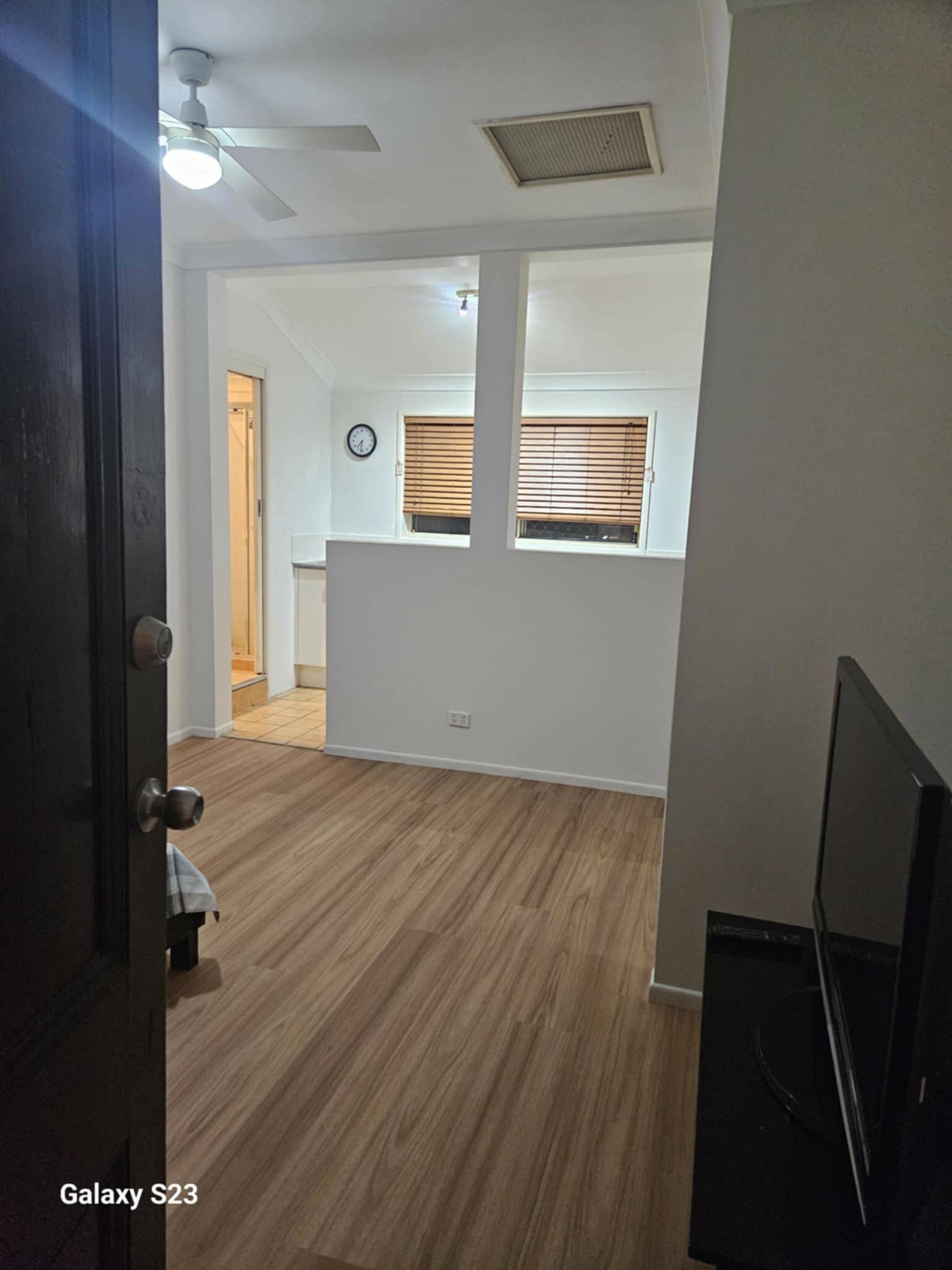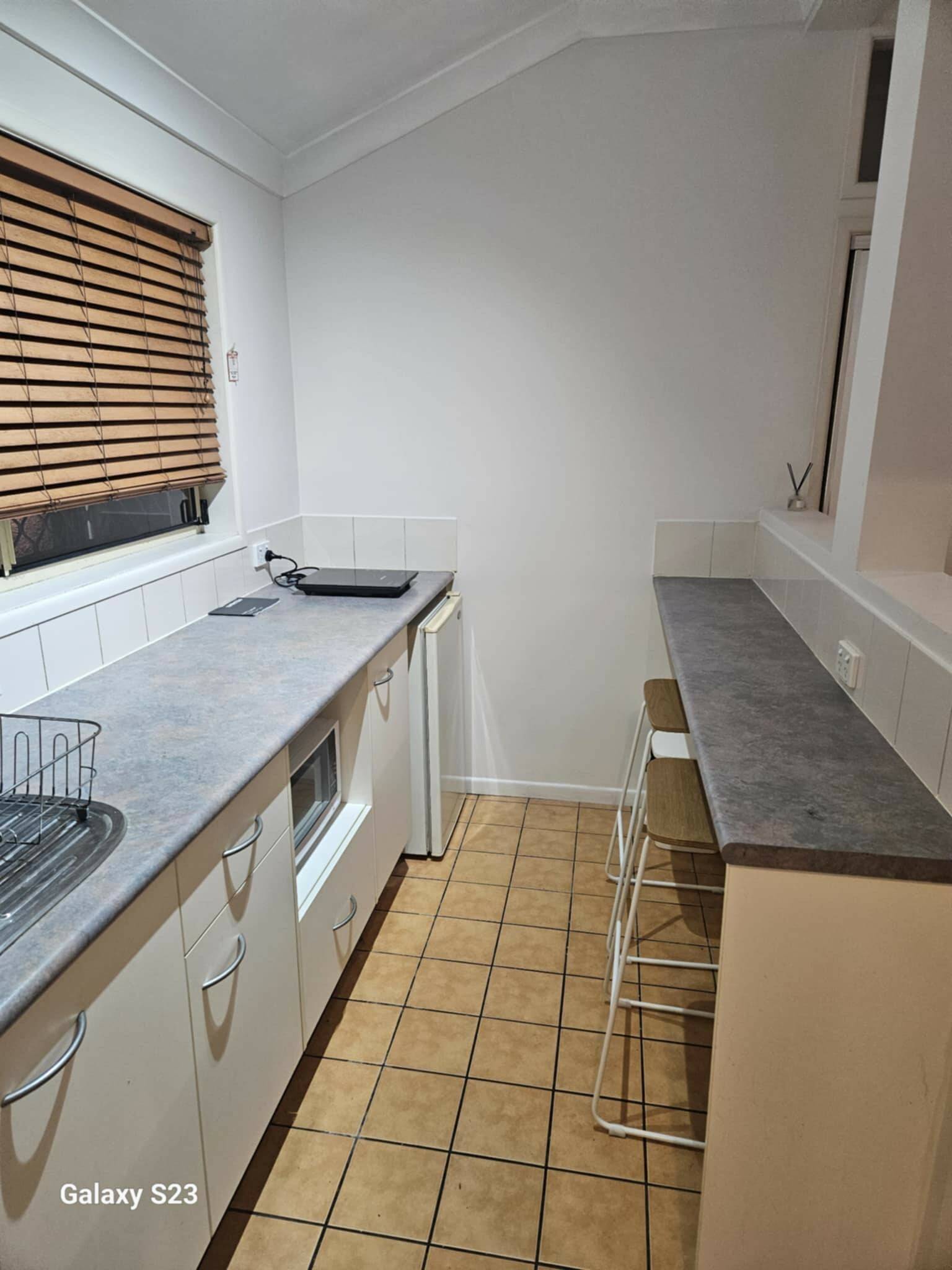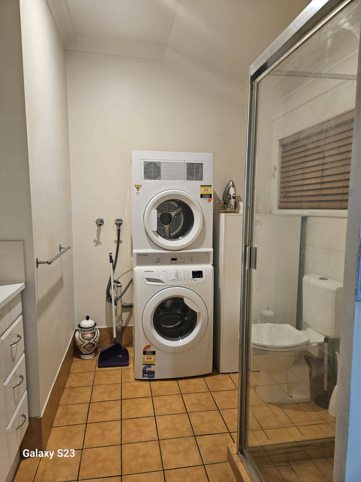 The kitchenette is well-equipped with a Contempo induction cooktop, Shark microwave, Westinghouse mini fridge, and a basic set of kitchen utensils – perfect for easy at-home meals. An internal laundry is included, featuring a Simpson 7kg Ezi Sensor washing machine and a Fisher & Paykel dryer.