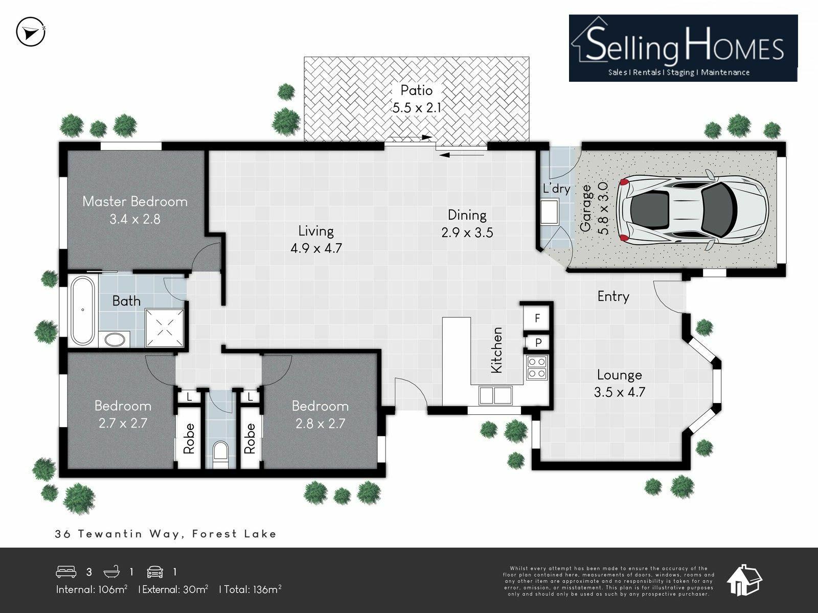 The home includes three bedrooms, one bathroom and a separate toilet.
