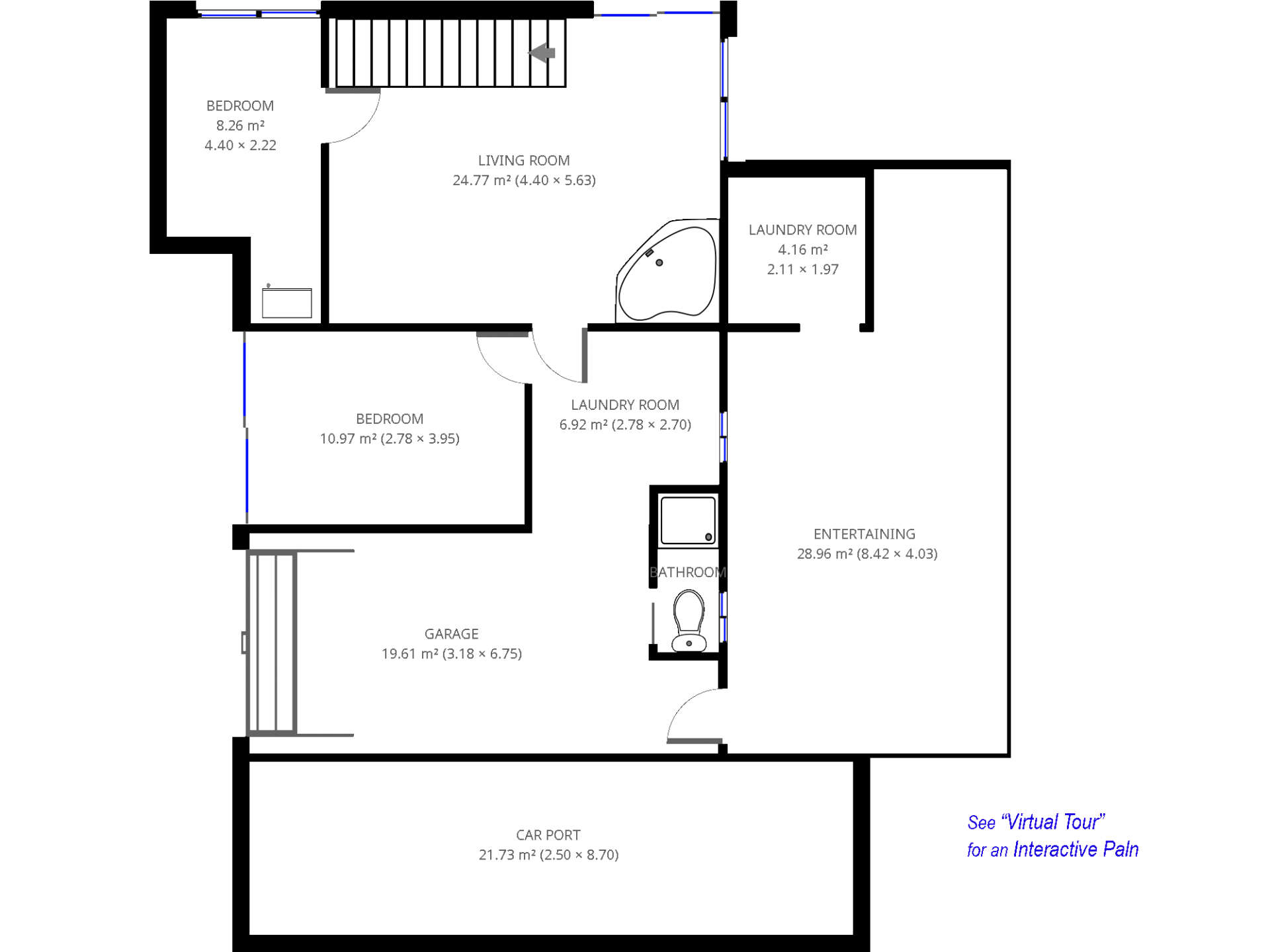 - Internal stairs to rumpus room with spa, large office / Studio, bathroom and laundry