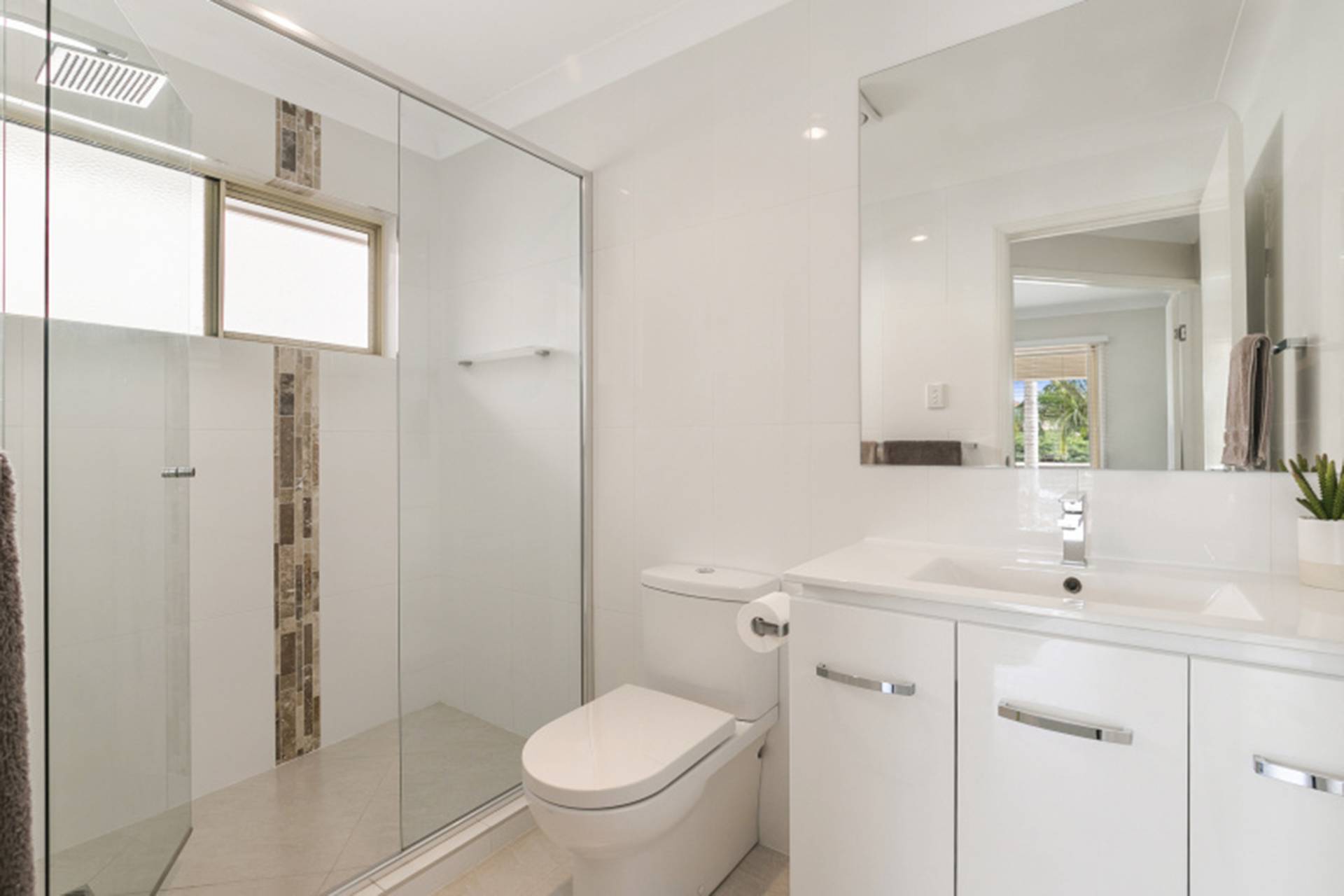 The upstairs floorplan consists of 3 double bedrooms and 2 full bathrooms. The front bedrooms both have water views and the back bedroom has its own vista of mature leafy green trees, which provide an additional sense of privacy and tranquility.