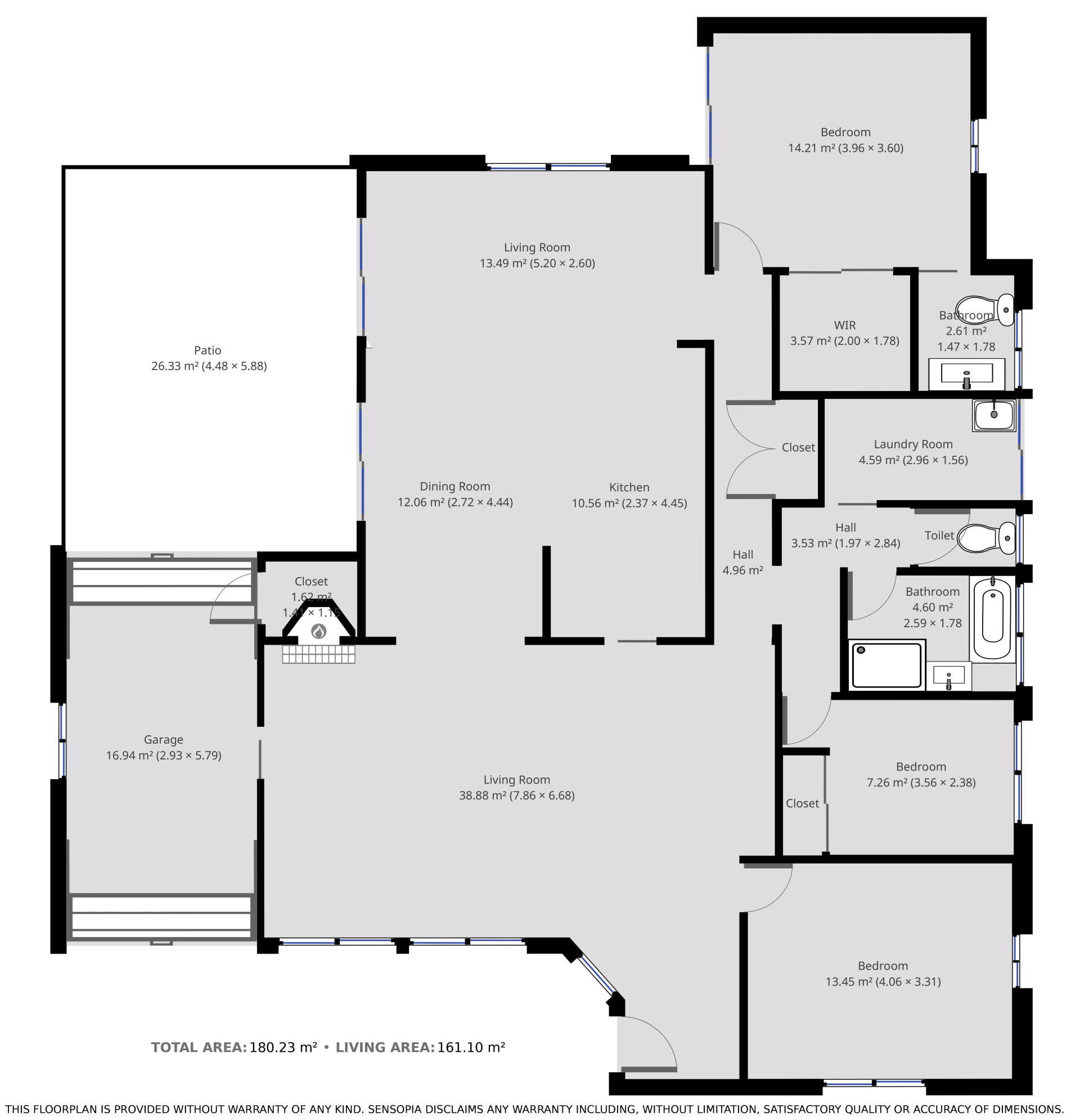 The size of the back yard is something you don t see every day and is relatively flat and usable with a scattering of fruit trees.