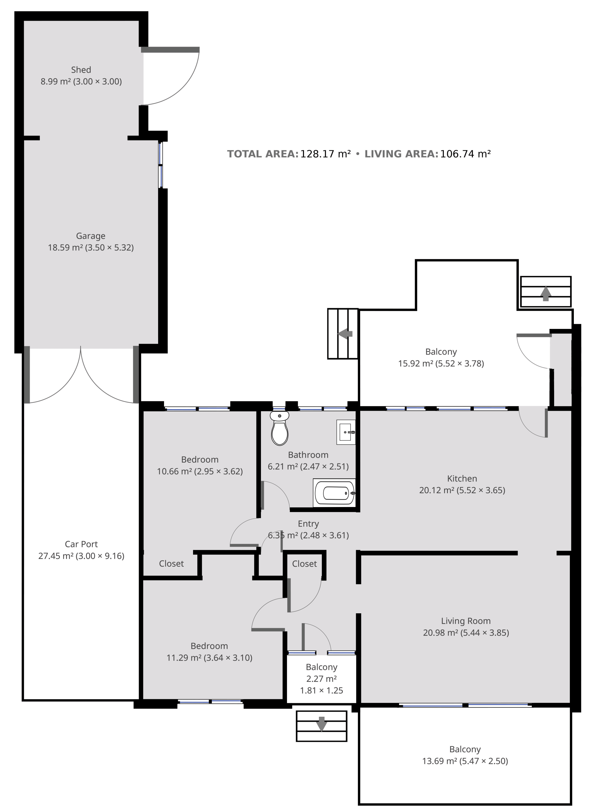 - 2 Bedrooms