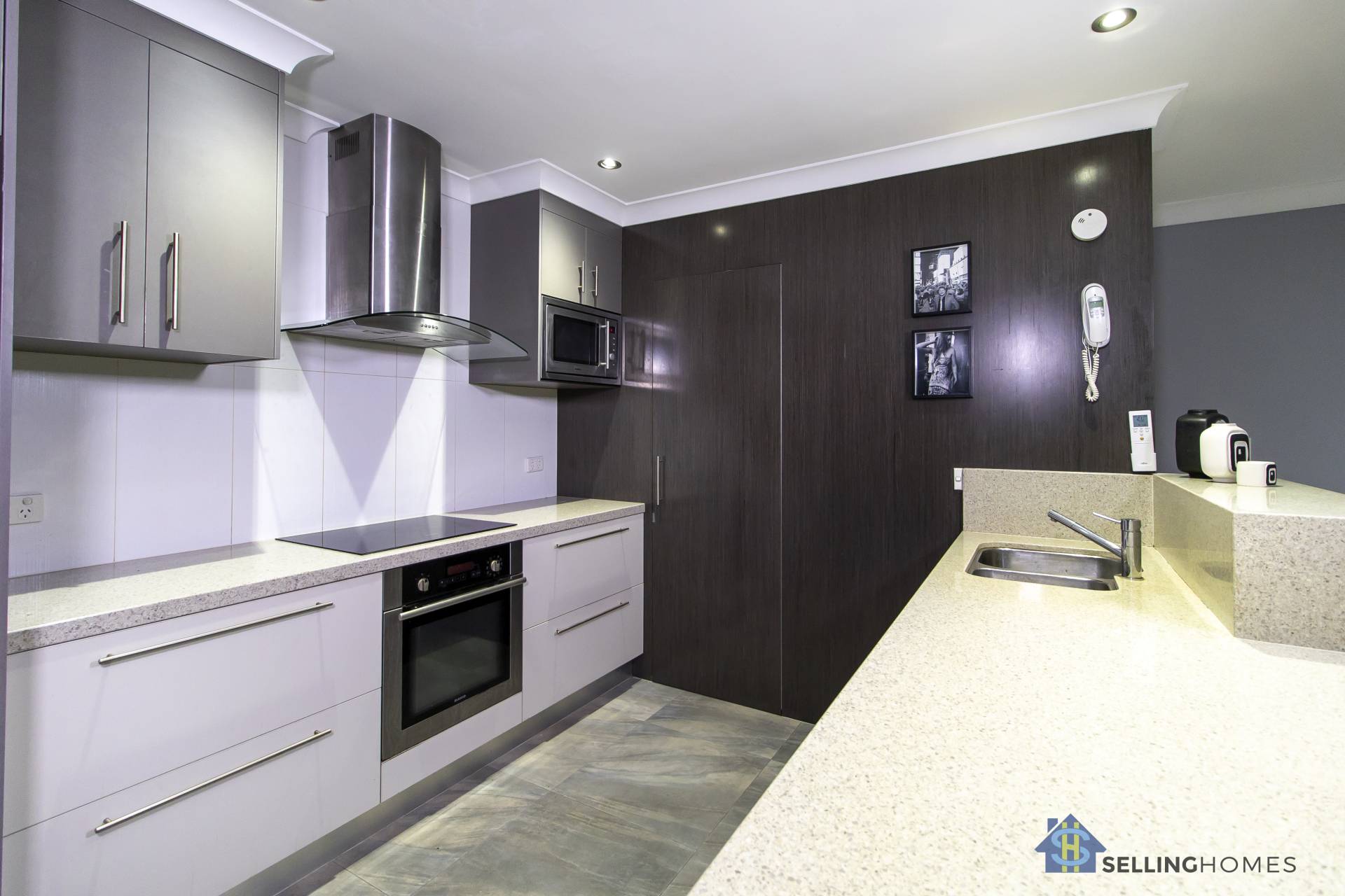 The kitchen boasts stone bench tops, modern appliances, an abundance of storage, together with a breakfast bench that creates a relaxed ambience that any home chef or host will delight in.