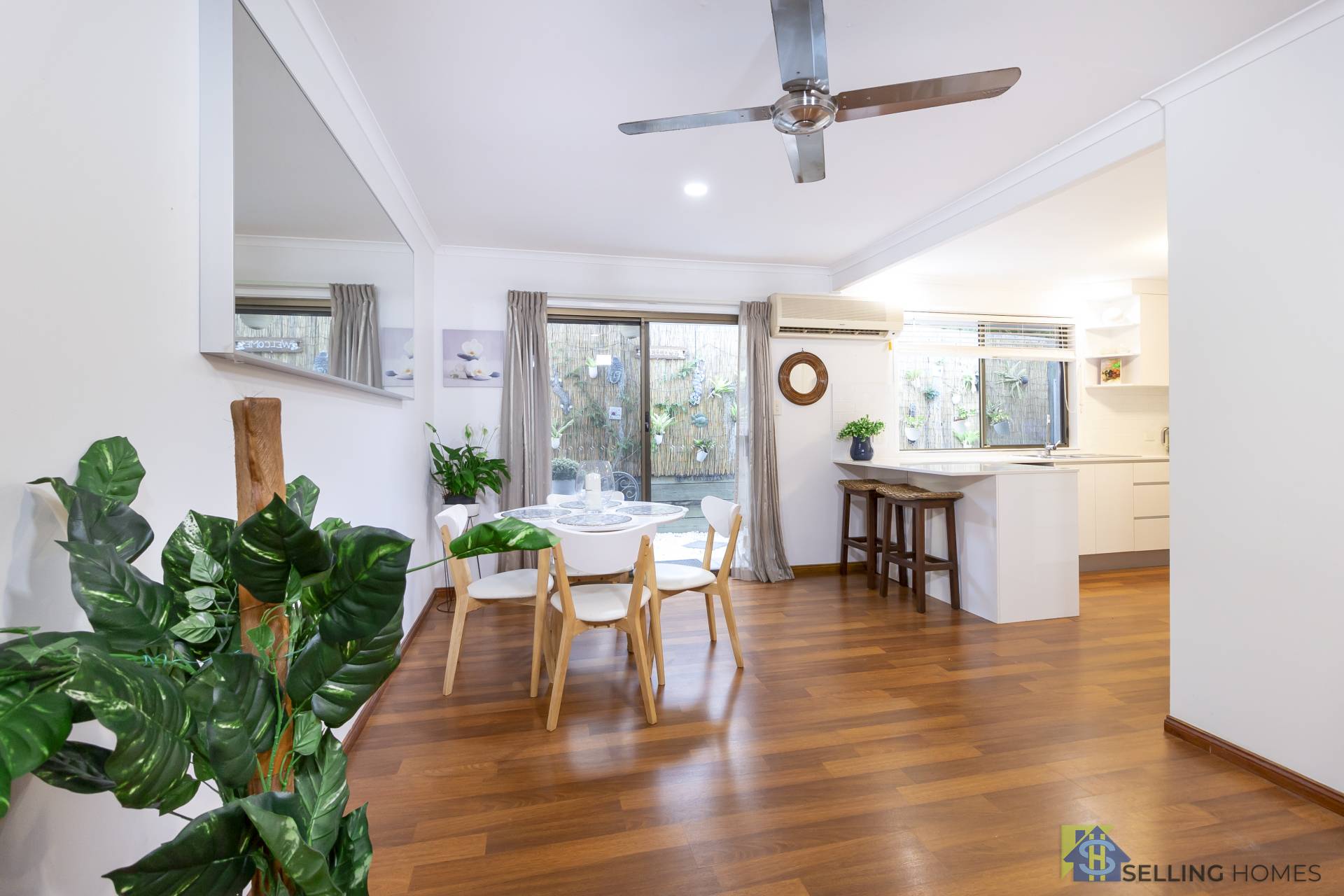 The private gated courtyard leads to the entry and through the airconditioned open plan lounge and dining room to the kitchen which is fucntional in design and features stone bench tops, large pantry and easily caters to all of your family needs.
