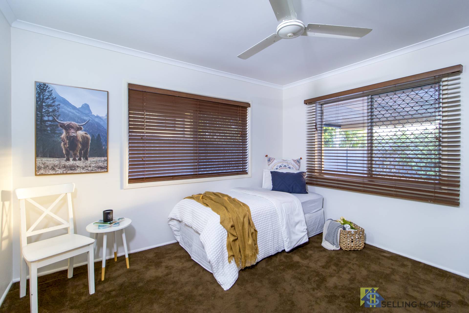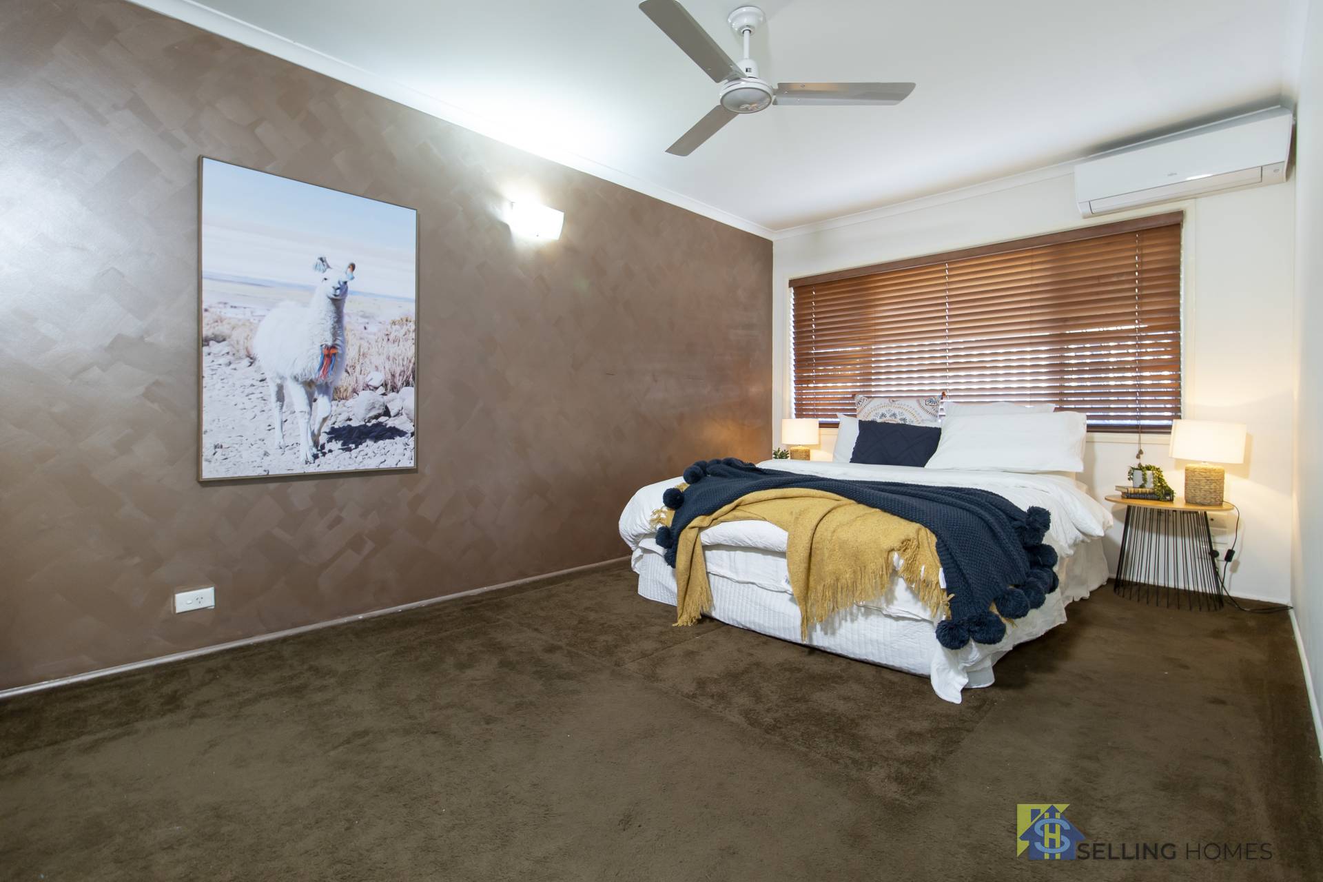 The master bedroom is a good size and provides a built-in robe, ceiling fan and air conditioning.