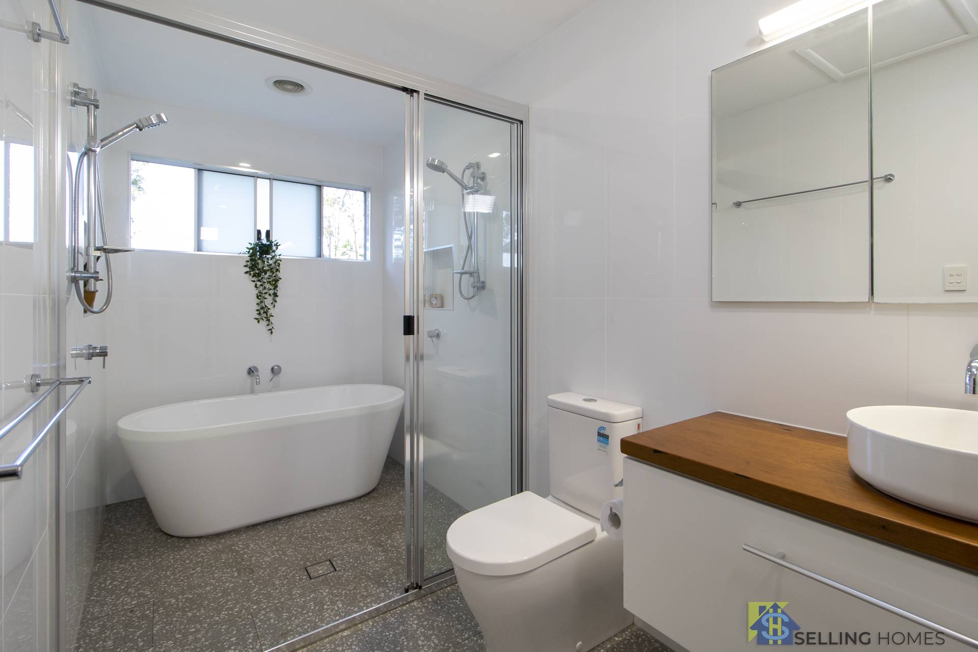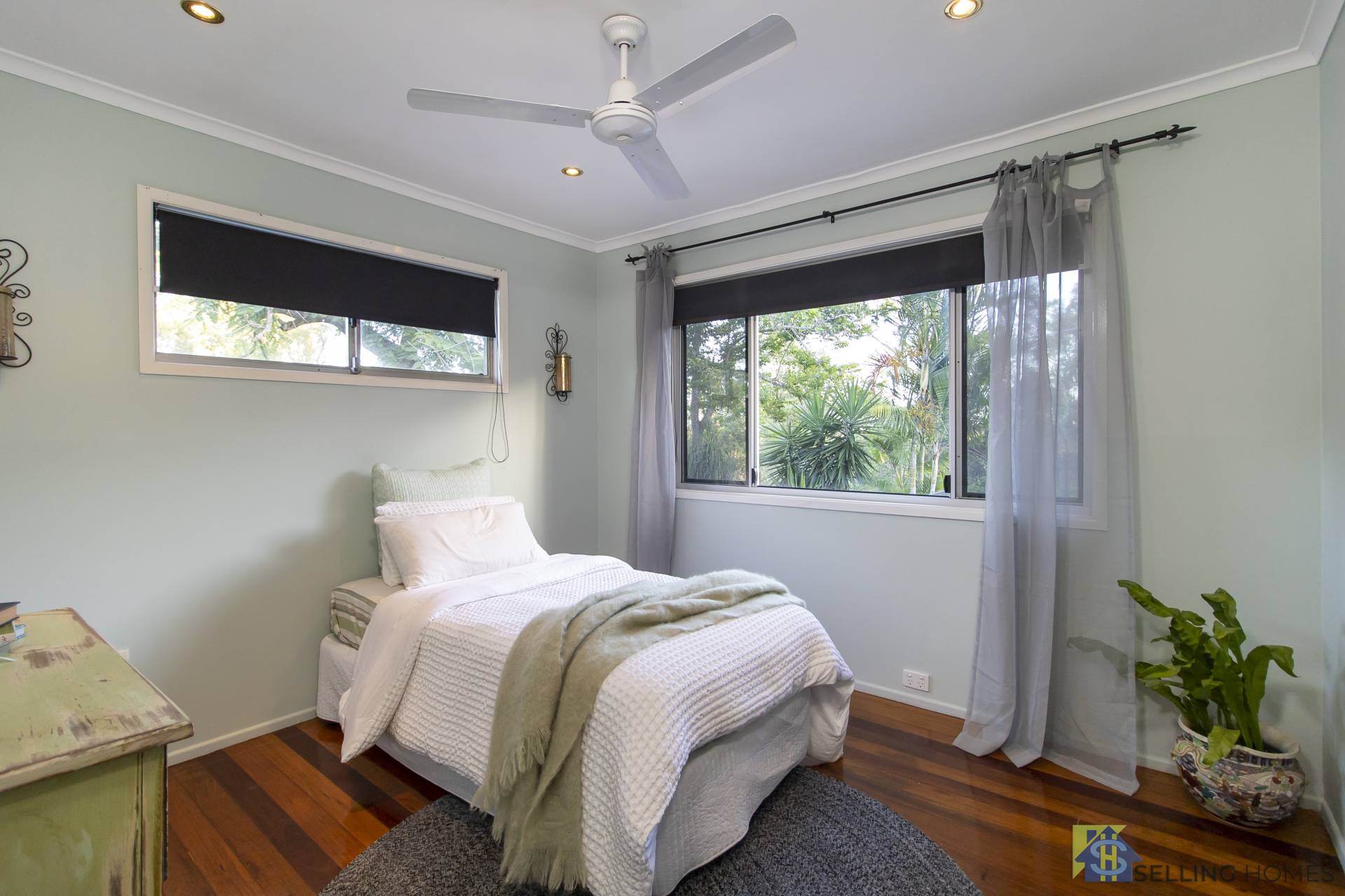 There are 3 good sized bedrooms, the master has a wall of built-in mirrored robes, ceiling fan and a bushland outlook.