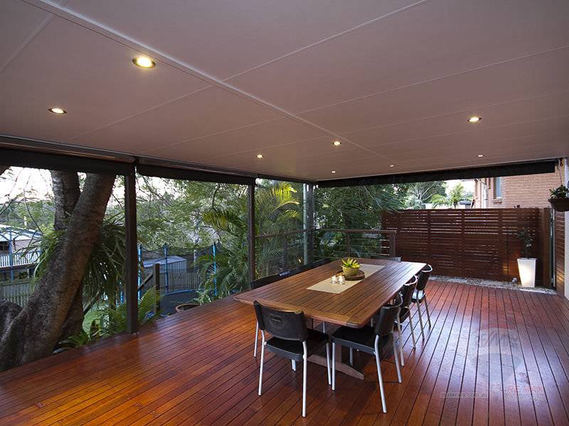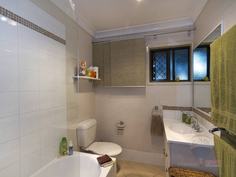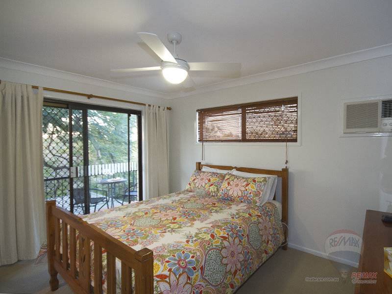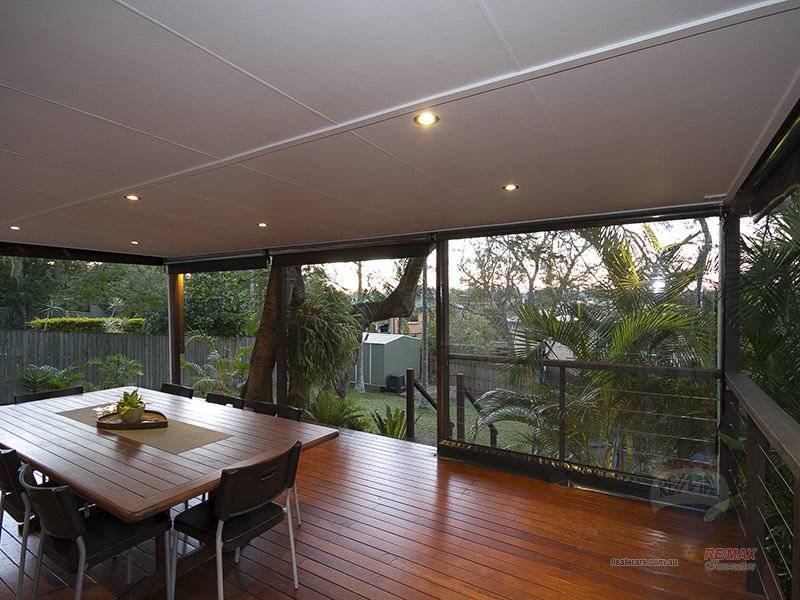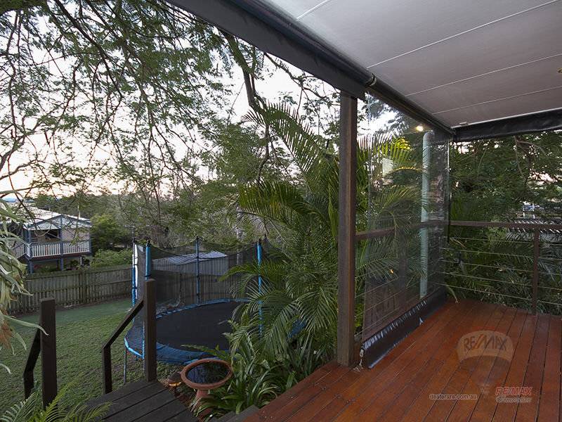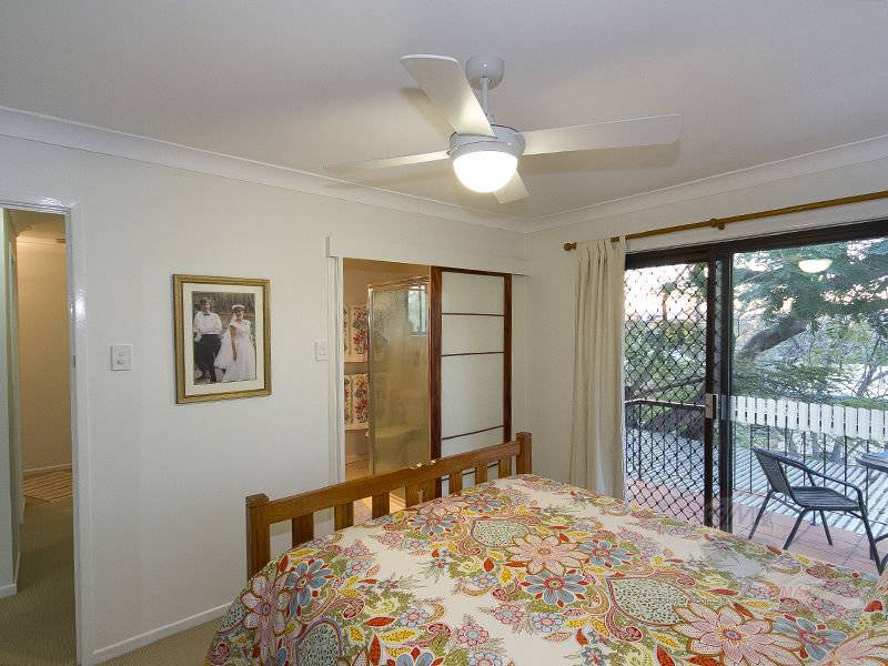 The master bedroom is located at the rear of the upstairs level, with a robed ensuite, and a private deck for two with views to Mt Coo-tha. The other large bedrooms are bright and airy and contain built-ins and ceiling fans.