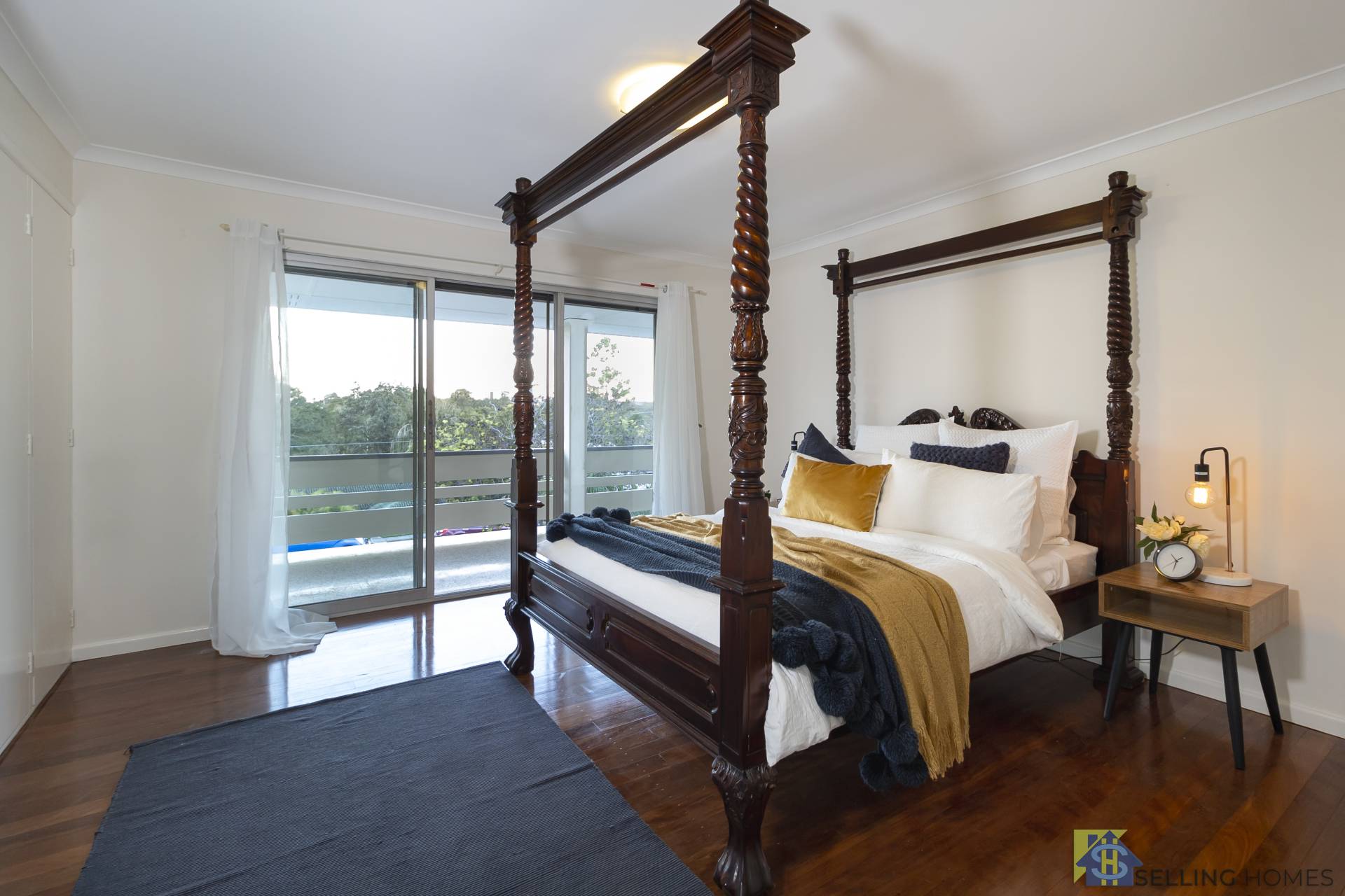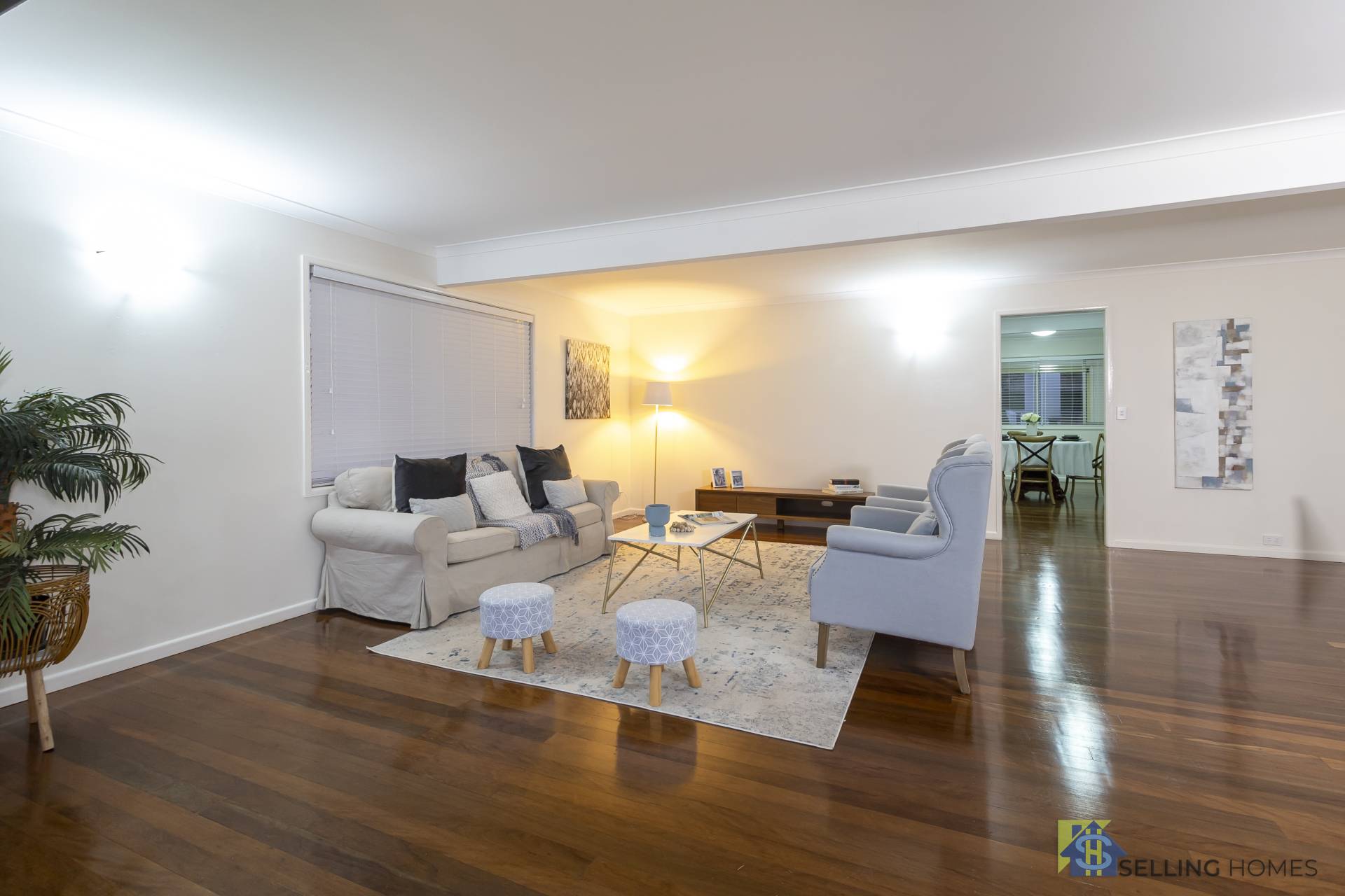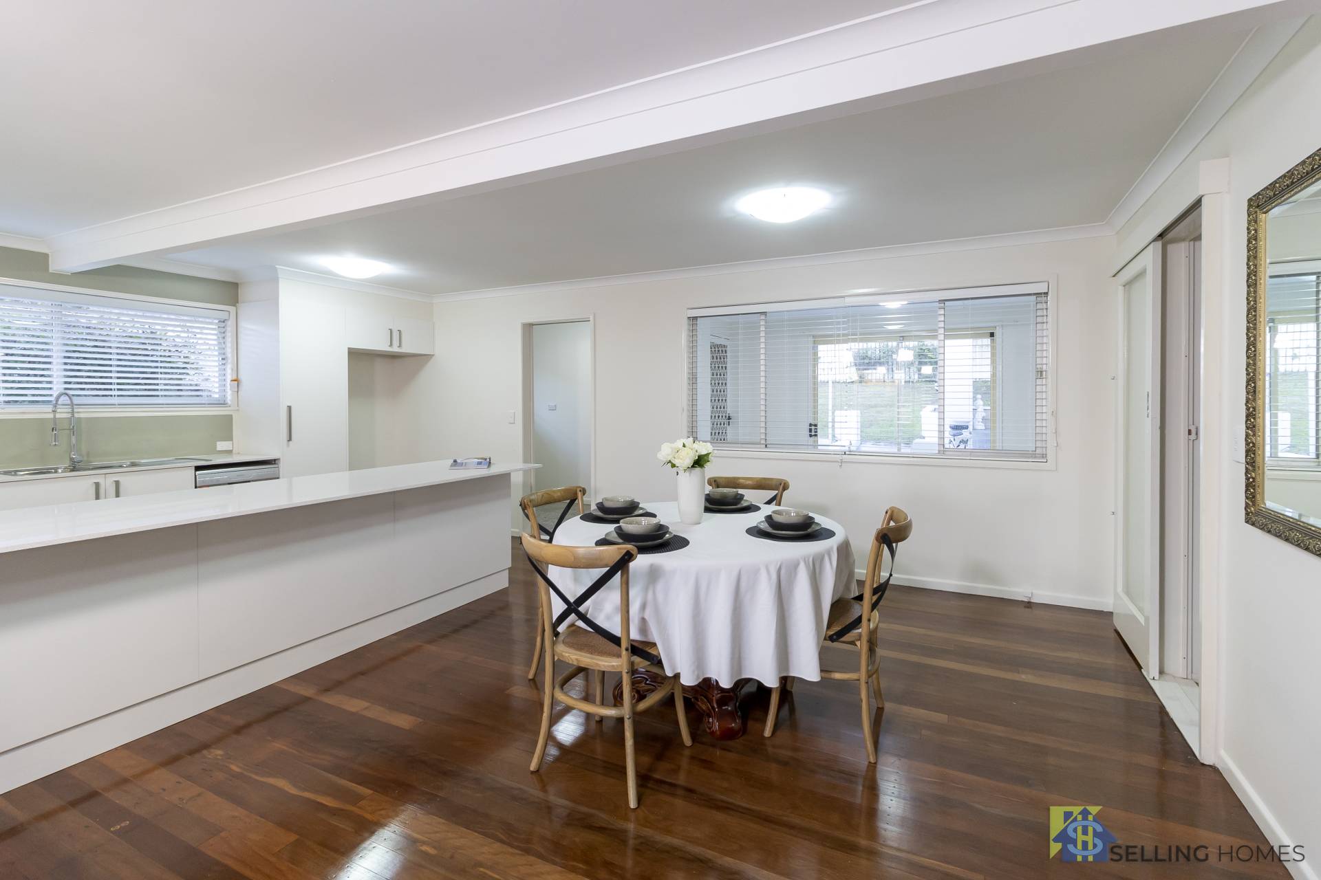- Polished timber floorboards