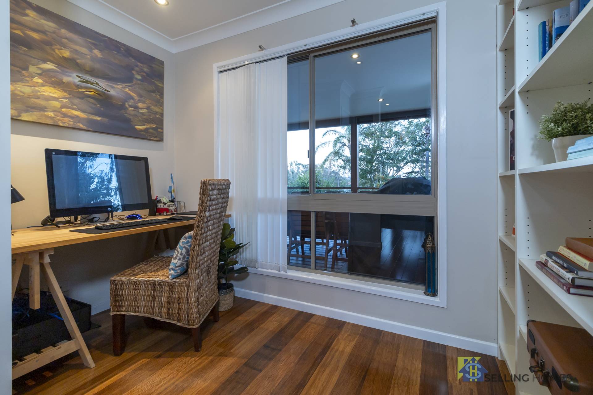 As you enter you will be greeted with beautiful bamboo flooring, an open plan, airconditioned living room flowing through to a spacious dining room which is also airconditioned. There is a quaint study on this level with lovely views through the large window.