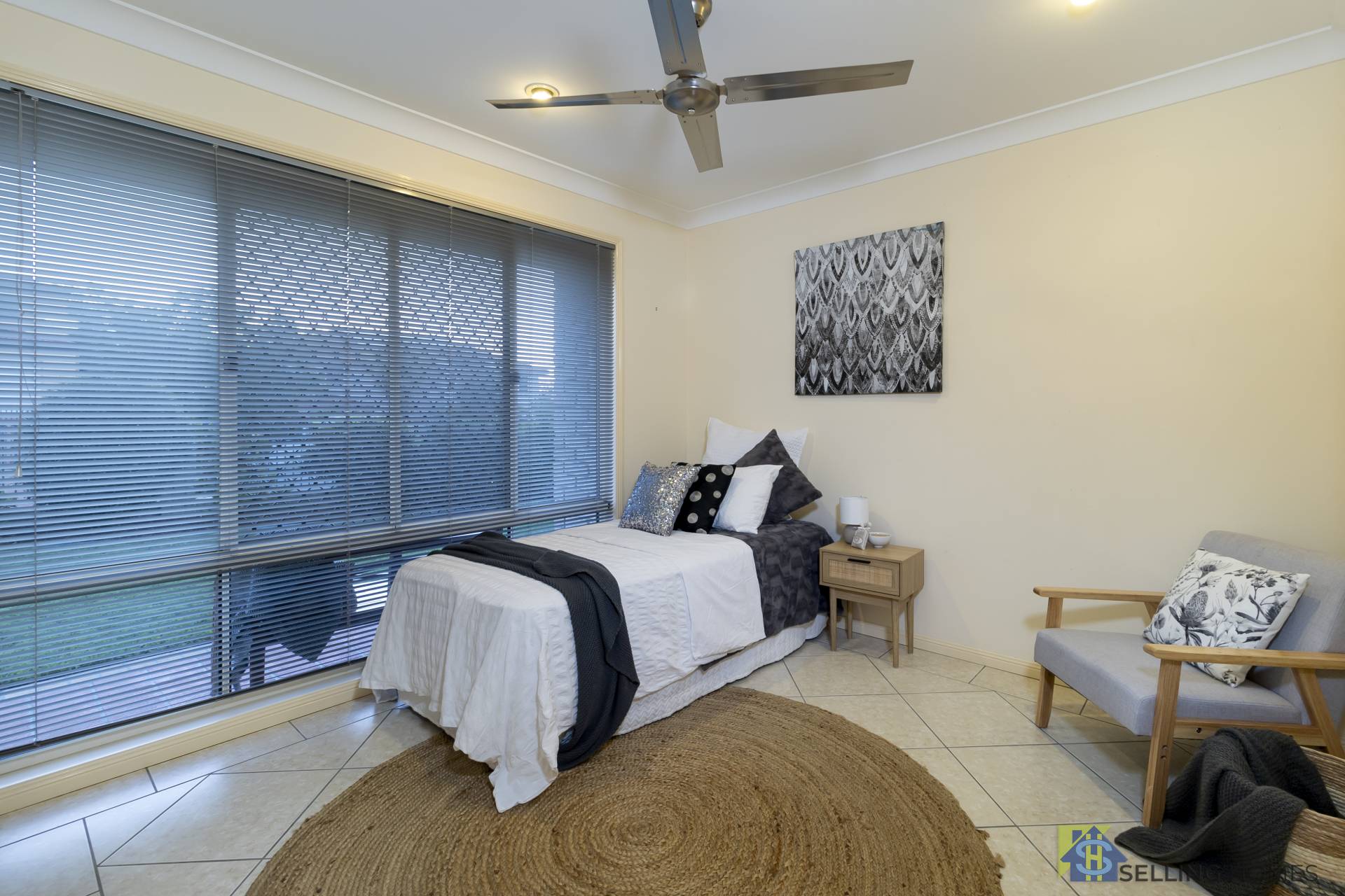- 4 good sized bedrooms with built ins and ceiling fans