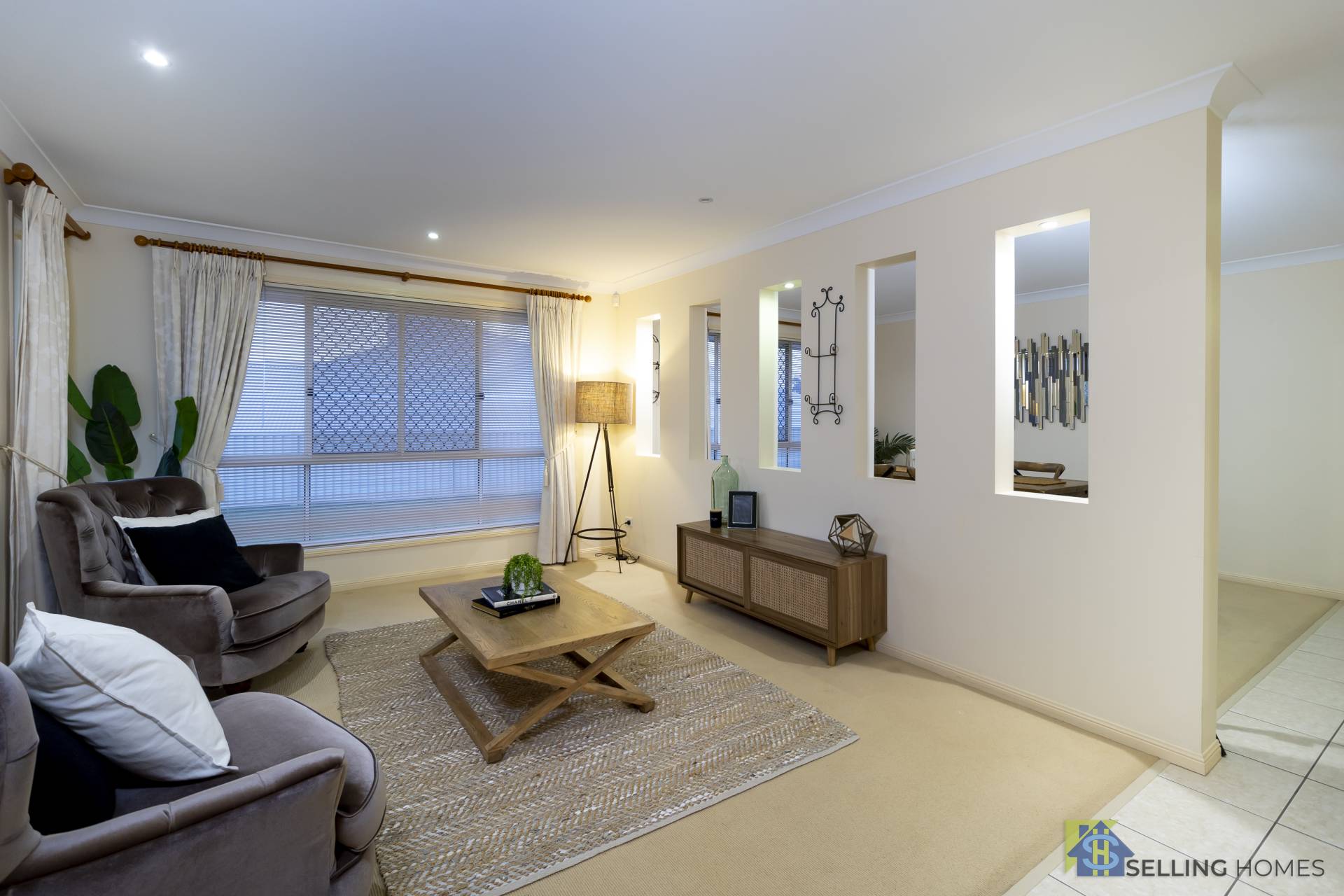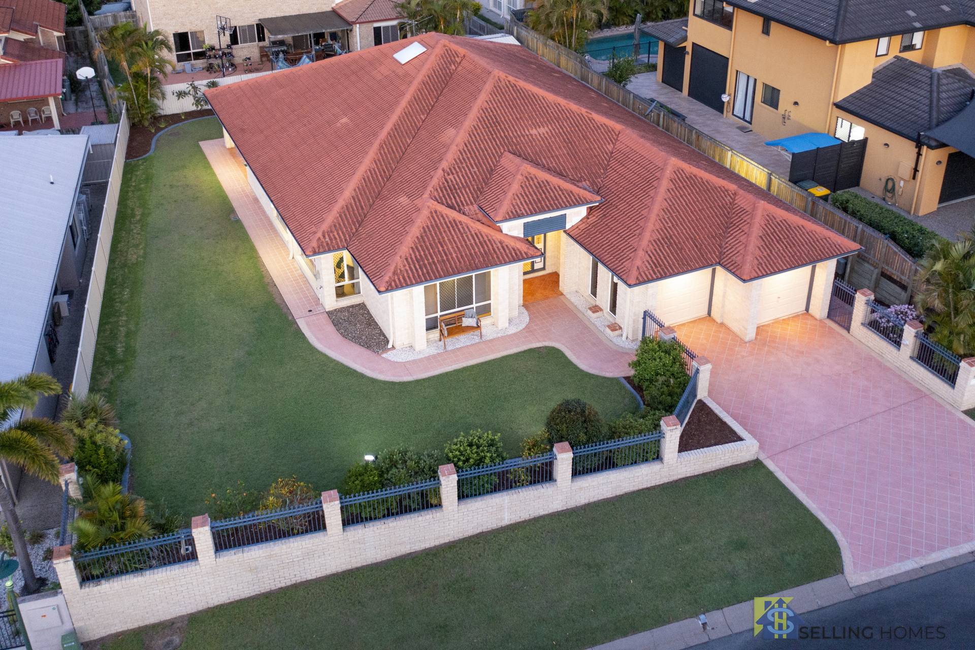 The spacious kitchen has loads of cupboard and bench space and has a convenient servery through to the large covered entertainment area. A huge void with skylight drenches the living areas in light, and a very functional layout offers ample space and separation and a neutral colour palette, this family home provides all level of privacy throughout.