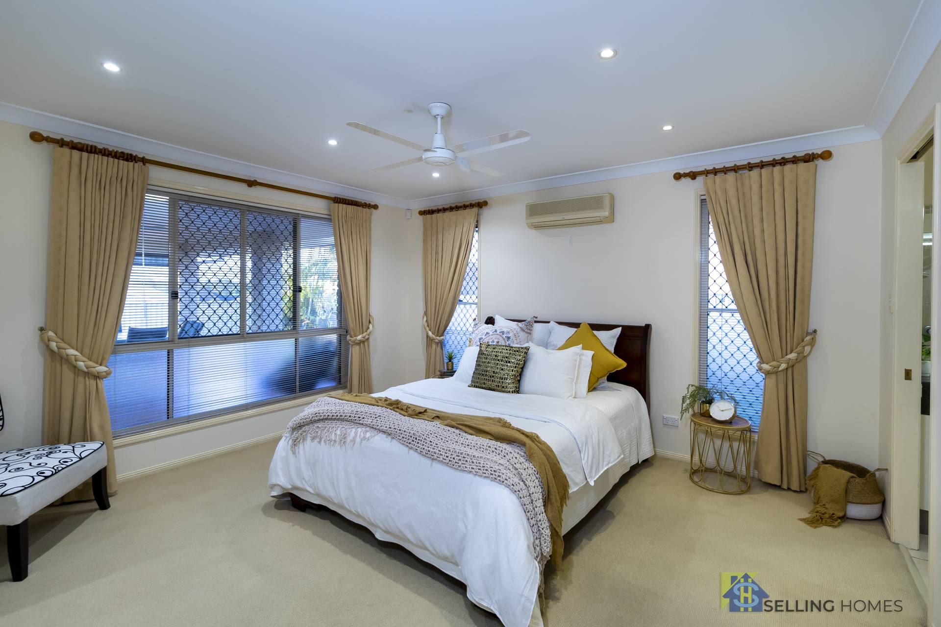 - Master bedrooms with air conditioning, spacious ensuite with spa bath and his and hers basin