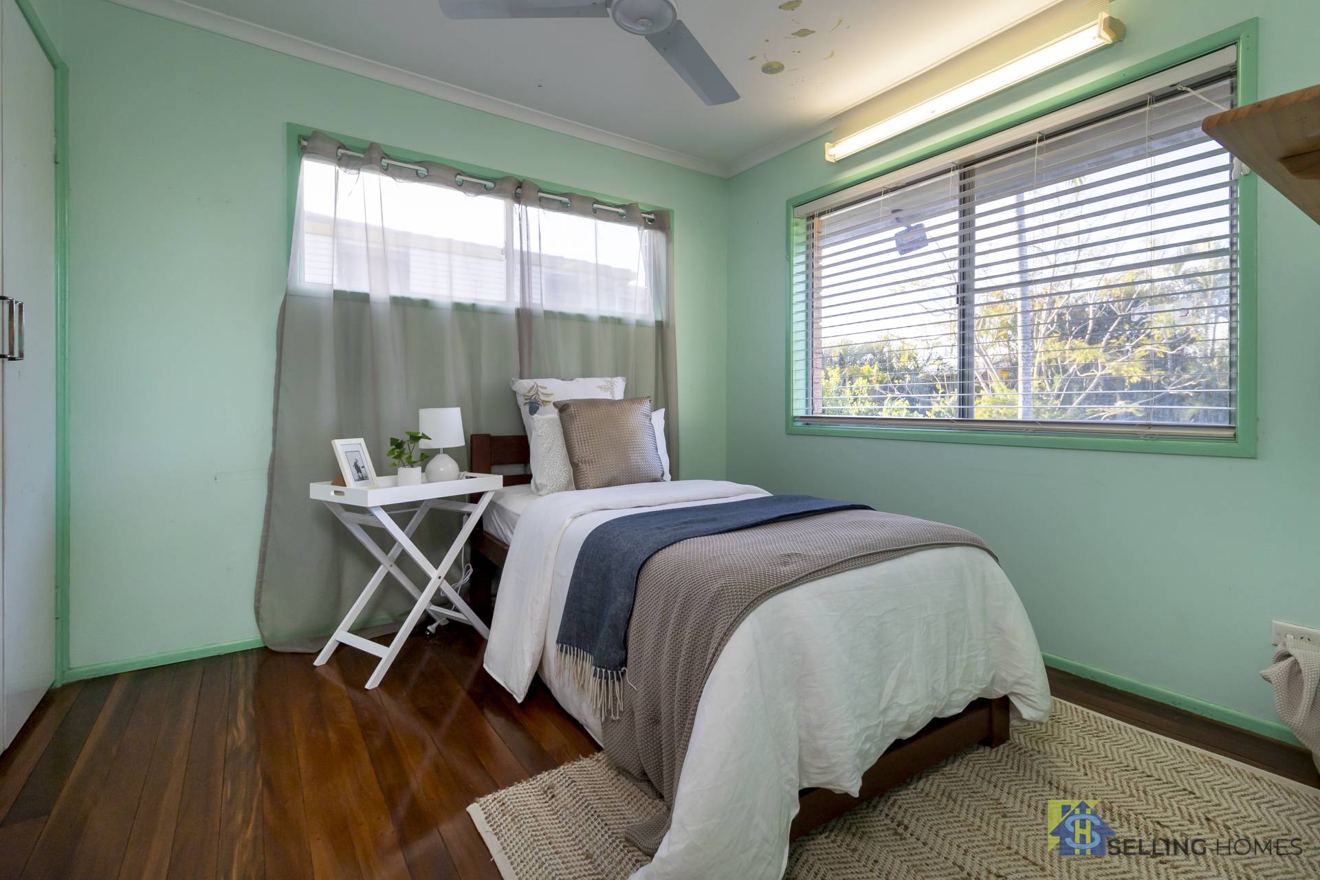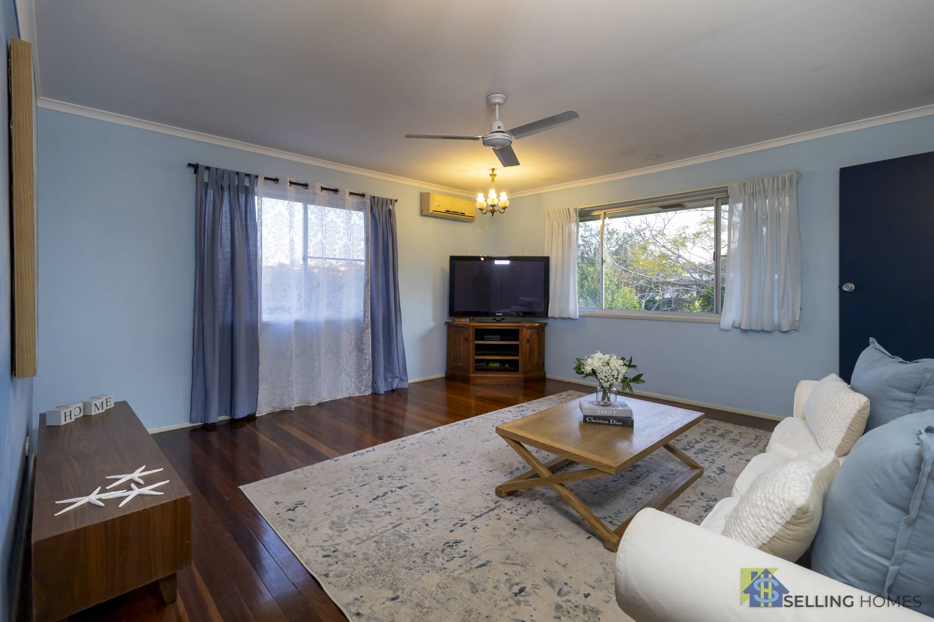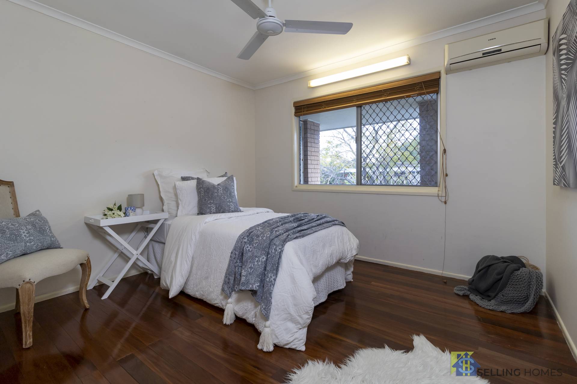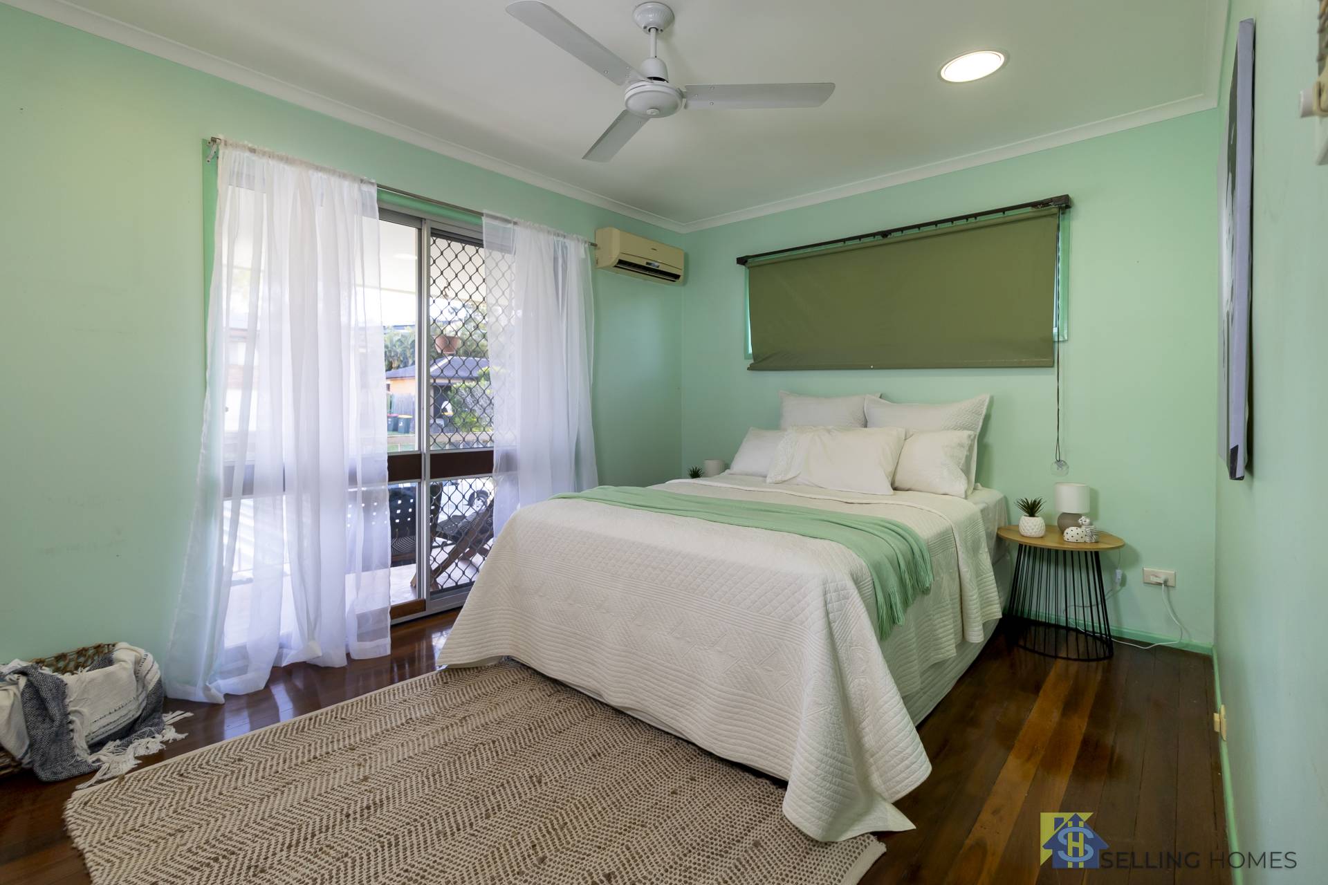 - Three spacious bedrooms, 2 with built ins and 2 with aircon, all with ceiling fans
