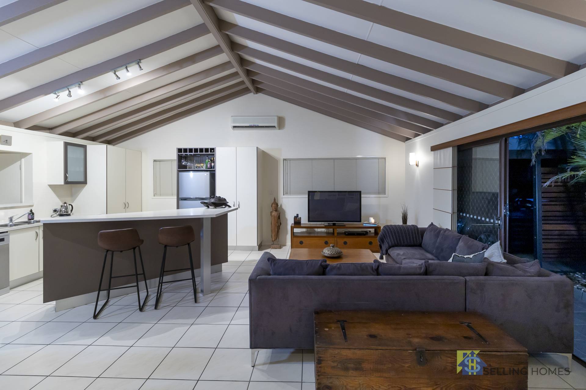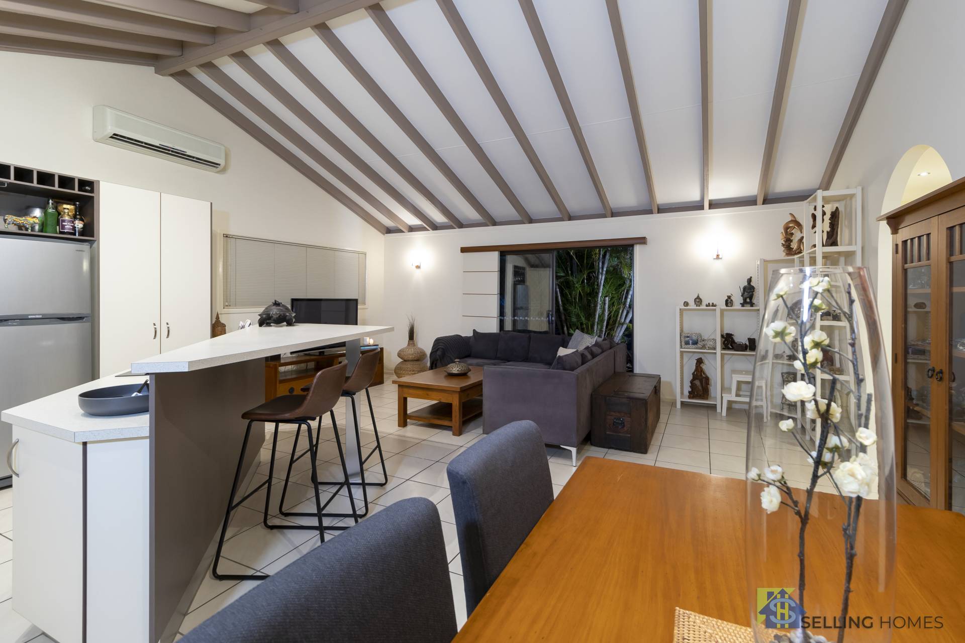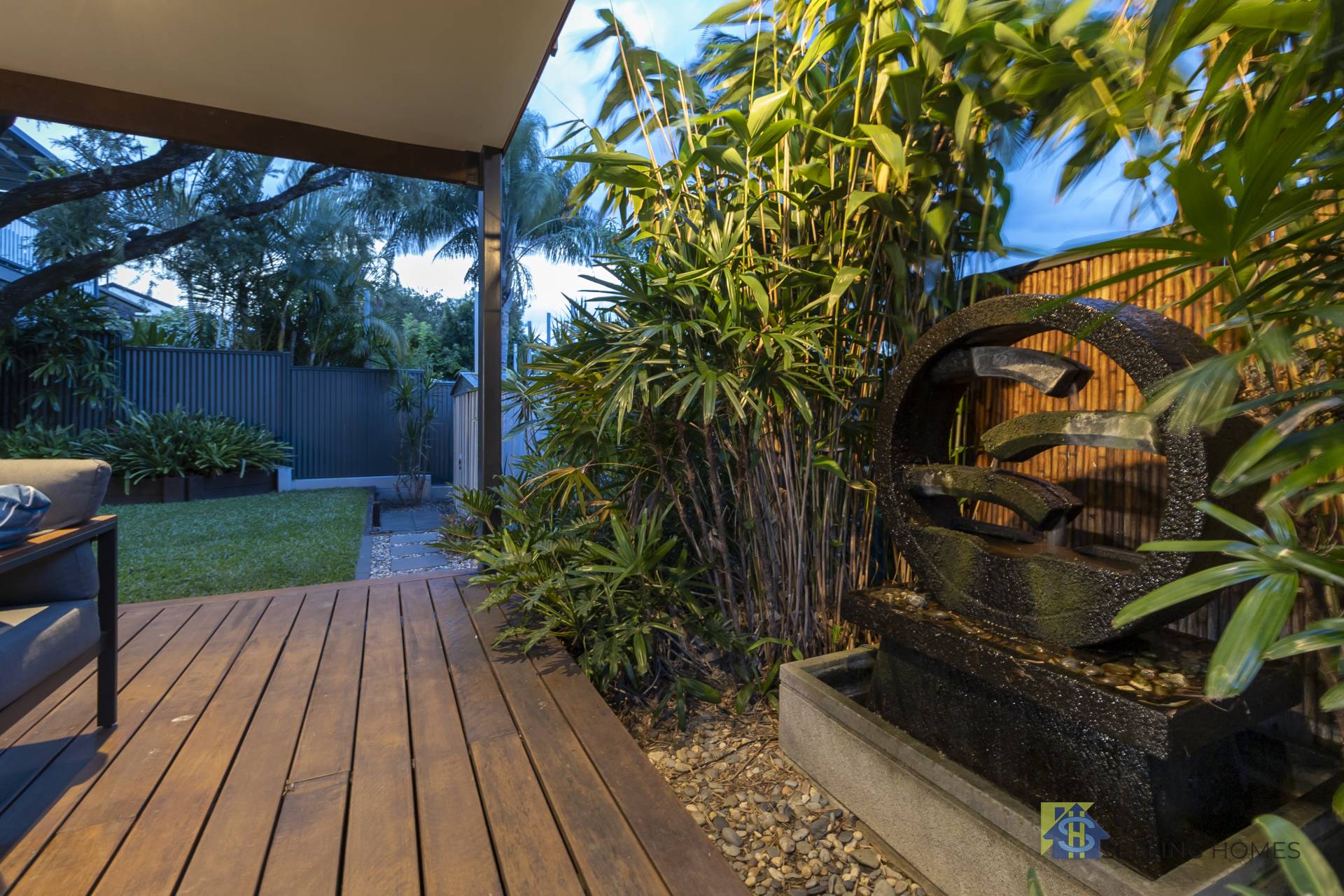 - Tropical gardens front and back with multiple levels of paved areas and level buffalo lawns kids and pets