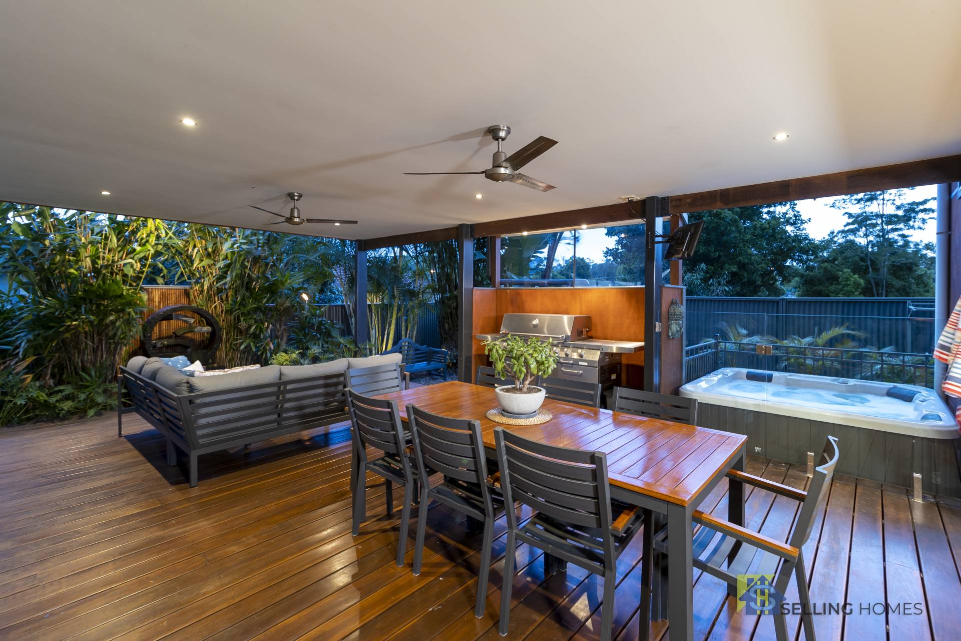 As you enter down the hallway you will be greeted with a stunning open plan flow. The 5 x bi-fold timber doors lead out to the large 7m x 5m entertaining area with BBQ, TV, water feature and 6 person spa bath.