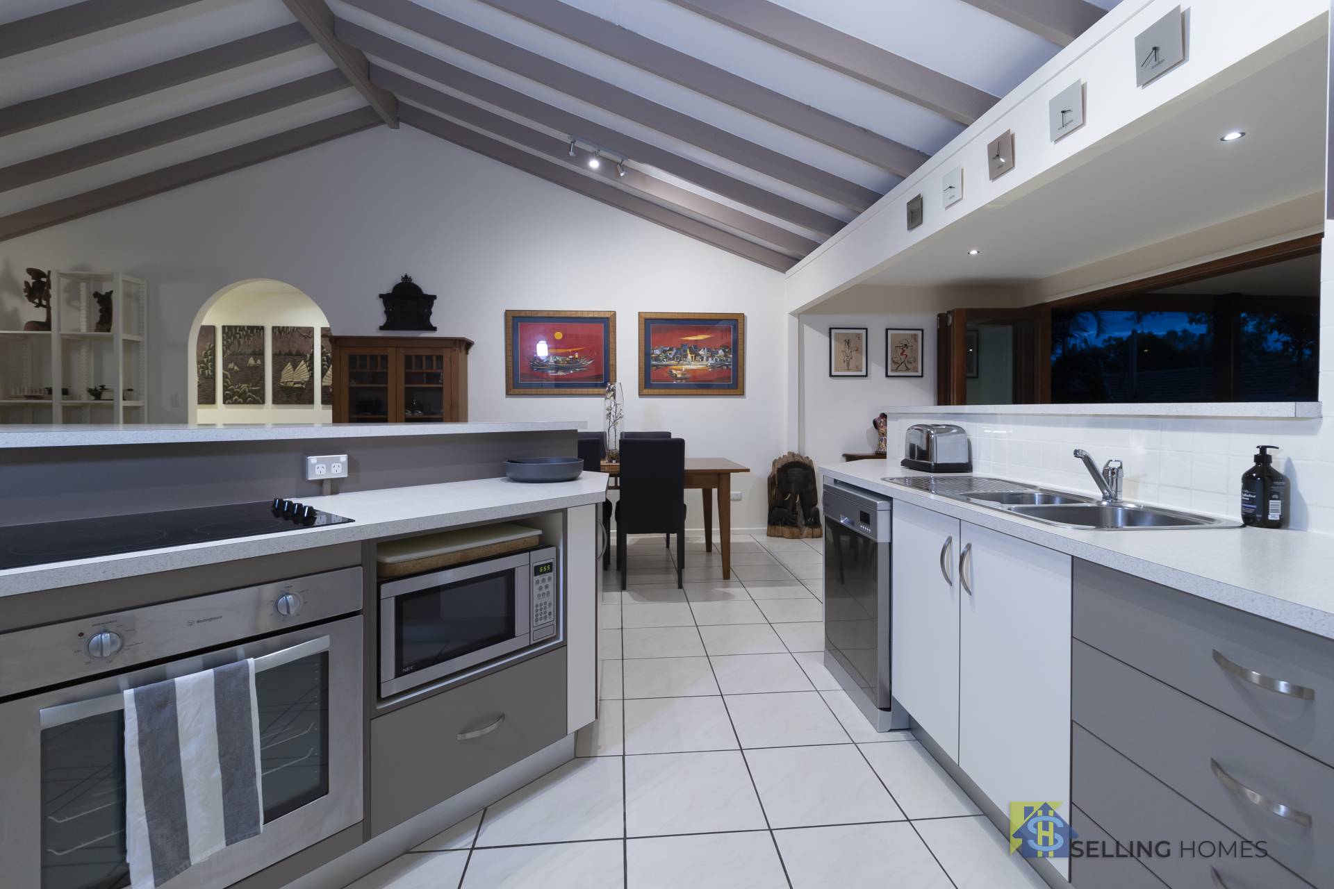 The spacious kitchen is a chef’s dream. A breath-taking mix of style and functionality featuring a selection of gorgeous cabinetry and breakfast bar. A convenient servery is positioned from the kitchen to the outdoor area.