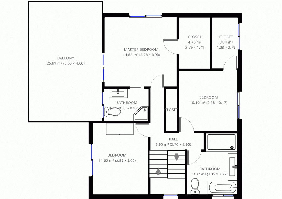 -Spacious Master with private balcony, ensuite, large walk in robe, ceiling fan and air conditioning
