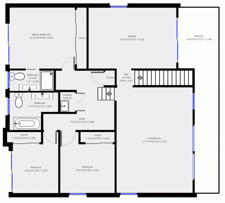 - Modern open plan kitchen with dish washer, gas cooking, stainless steel appliances and breakfast bar