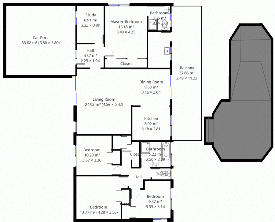 - Master bedroom with en-suite, triple door built-in robe, air-conditioning and ceiling fan